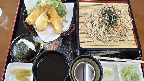 JR宗谷本線和寒から、国道40号線を外れ西へ3Kmほど田んぼ、畑の中を進んだところの山際にあるプレハブの建物の手打ちそば屋さん。人気店で、店内にも待合の椅子が並んでいます。待つこと20分ほどでテーブルに案内され、てんぷらそばを注文。