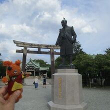大阪城の桜門を睨む位置に秀吉像が立っています。