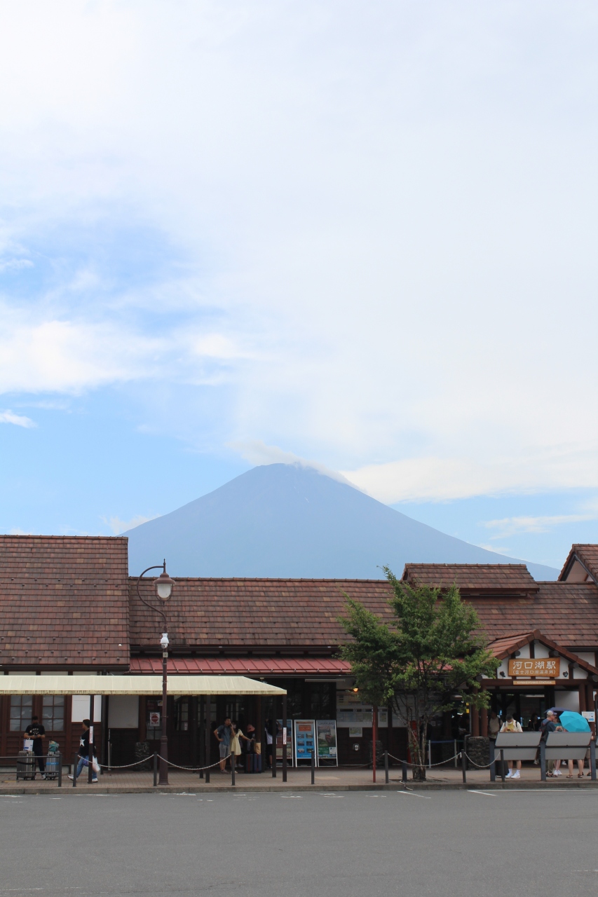 富士山を見るために新宿から電車で河口湖まで行きました。