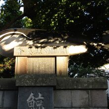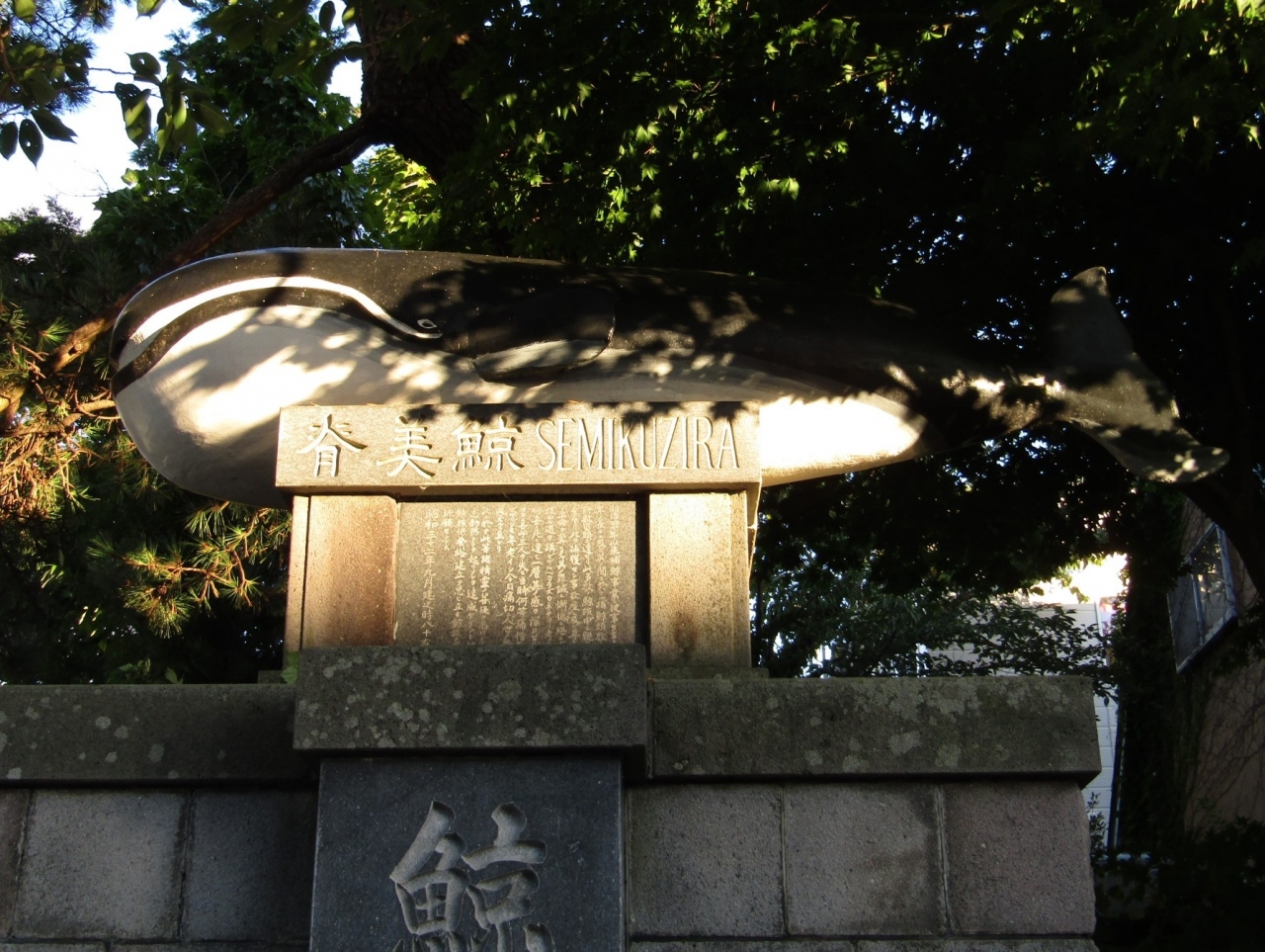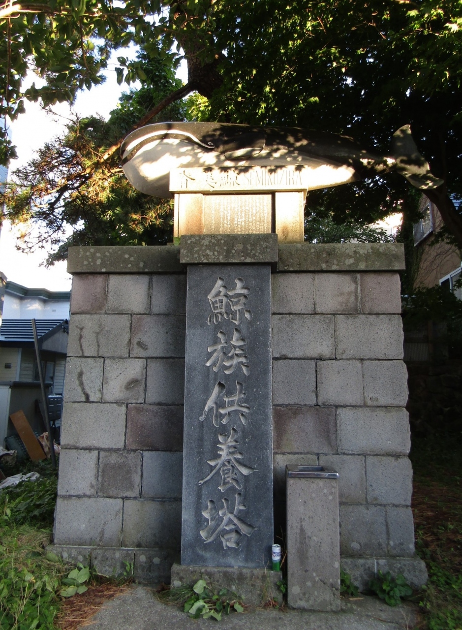 長年日本が捕鯨により恩恵を受けてきた割には小さな供養塔で、上にちょこんと乗った鯨のモチーフが可愛らしい。