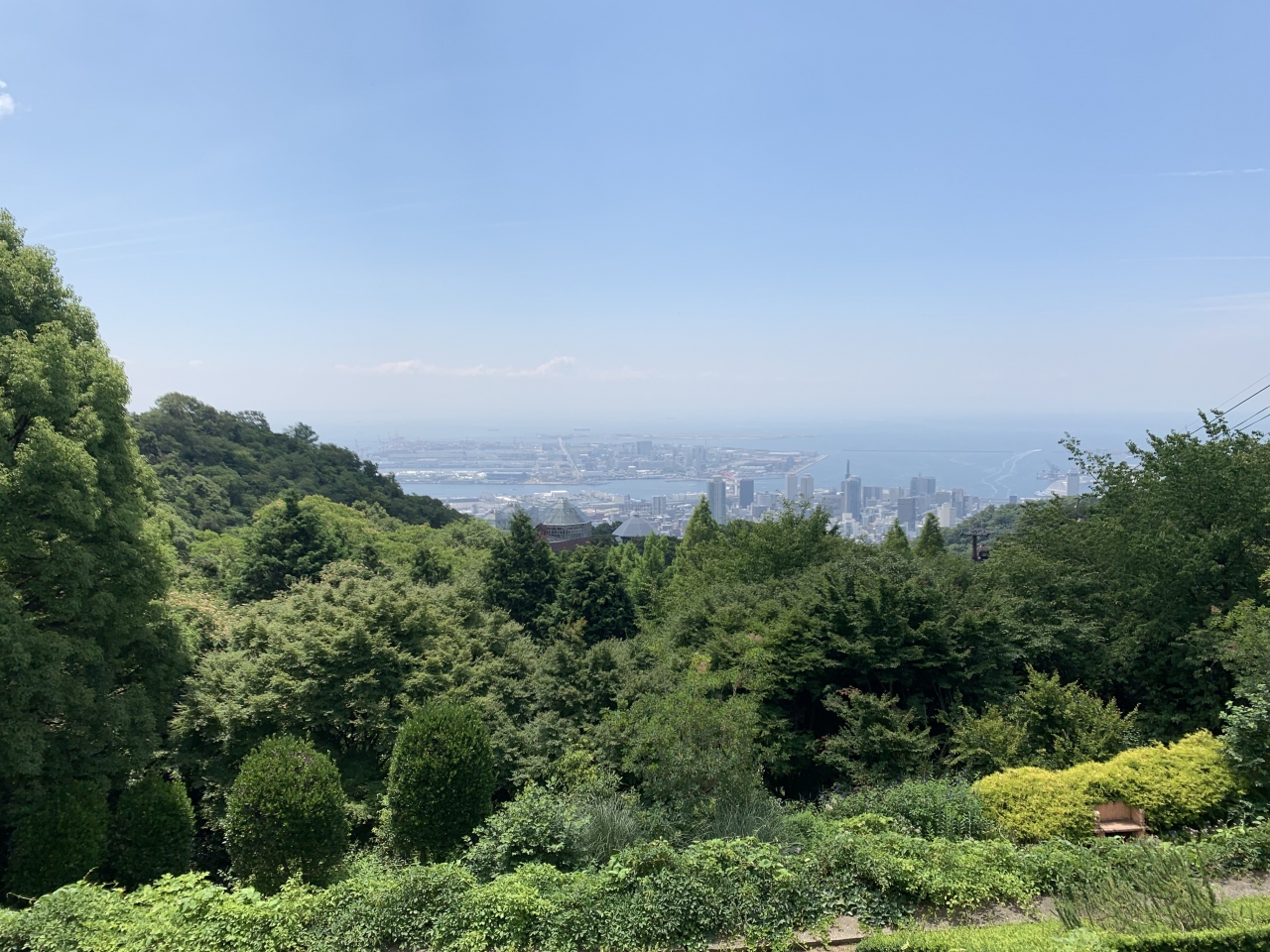 神戸の観光にはシティループのバスを使っていました。バス停で待っていると、停留所でバスの案内をしている係の方に話しかけられました。今日は晴れていて眺めも良いし、花もきれいだからロープウェイでハーブ園へ行って見なさい、」と勧められました。シティループの停留所で降りて、ロープウェイに乗りました。頂上の展望台で降りると神戸の街と海が一望できいました。そこからハーブ園の中を歩きながら下る構成で、温室もありいろいろな植物がみられます。
