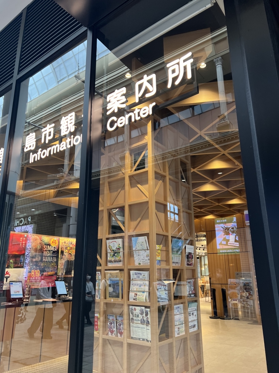 天文館商店街の入り口にあるセンテラスの一階にある観光案内所です。ガラス張りになっているとておおしゃれな施設となっています。ガラス張りなのでオープンな感じで入りやすい点もよいですね。場所もたいへんわかりやすいです。