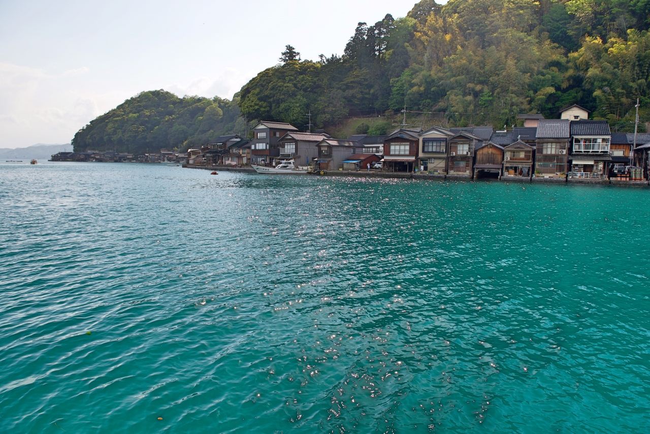 丹後半島の東端にある伊根町では、海に面して建てられた一階は船のガレージになって、二階は居住スペースになっている「舟屋」はあります。湾を囲むようになって船から見ると良く分かります。天橋立からバスで約1時間が掛かります。