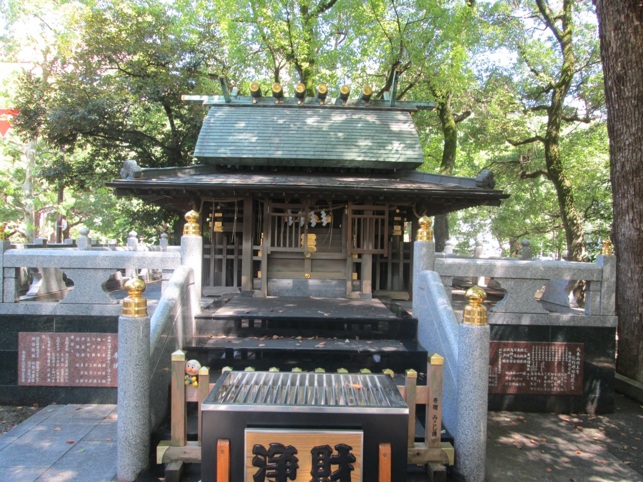 ゆやじんじゃと読みます。増上寺の山内東北部にあります。創建は1624年、増上寺第十三世正誉廓山上人が寺鎮守として、東北の鬼門として勧請、ご祭神はケツミコノオオカミ、大己貴命、イザナギノミコトです。鳥居を潜ると、左にやたがらすが描かれた手水鉢、正面に社殿があります。やたがらすは熊野大神(スサノオノミコト)に仕える存在として信仰され、熊野三山のシンボルともされる。日本サッカー協会のシンボルにもなっています。熊野の名が付く神社を十社以上訪れていますが、熊野本宮大社以外では見たことがありません