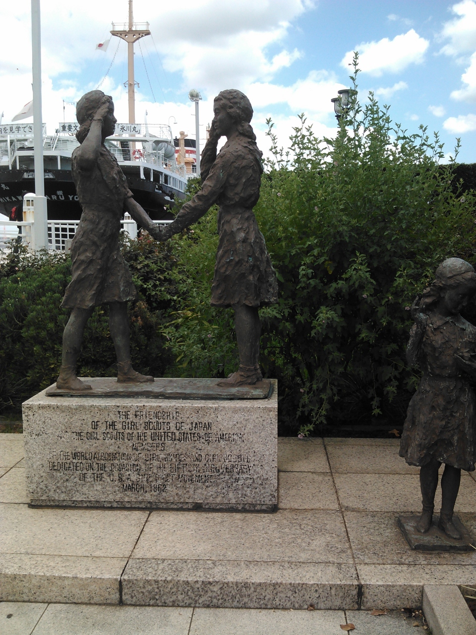 山下公園内には、海外に関する各種オブジェや銅像などがあります。居留地があちこち存在していますから、ここに集約された感じです。その一つにガールスカウトの像があります。面白いことに銅像のモデルが実在していたという話は有名かと思います。像は、60年以上前の1962年に建てられたそうですが、随分と年代物です。
