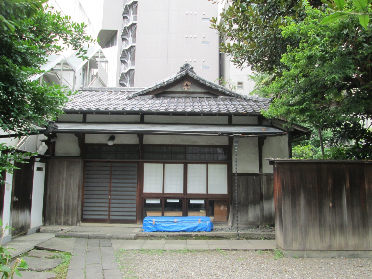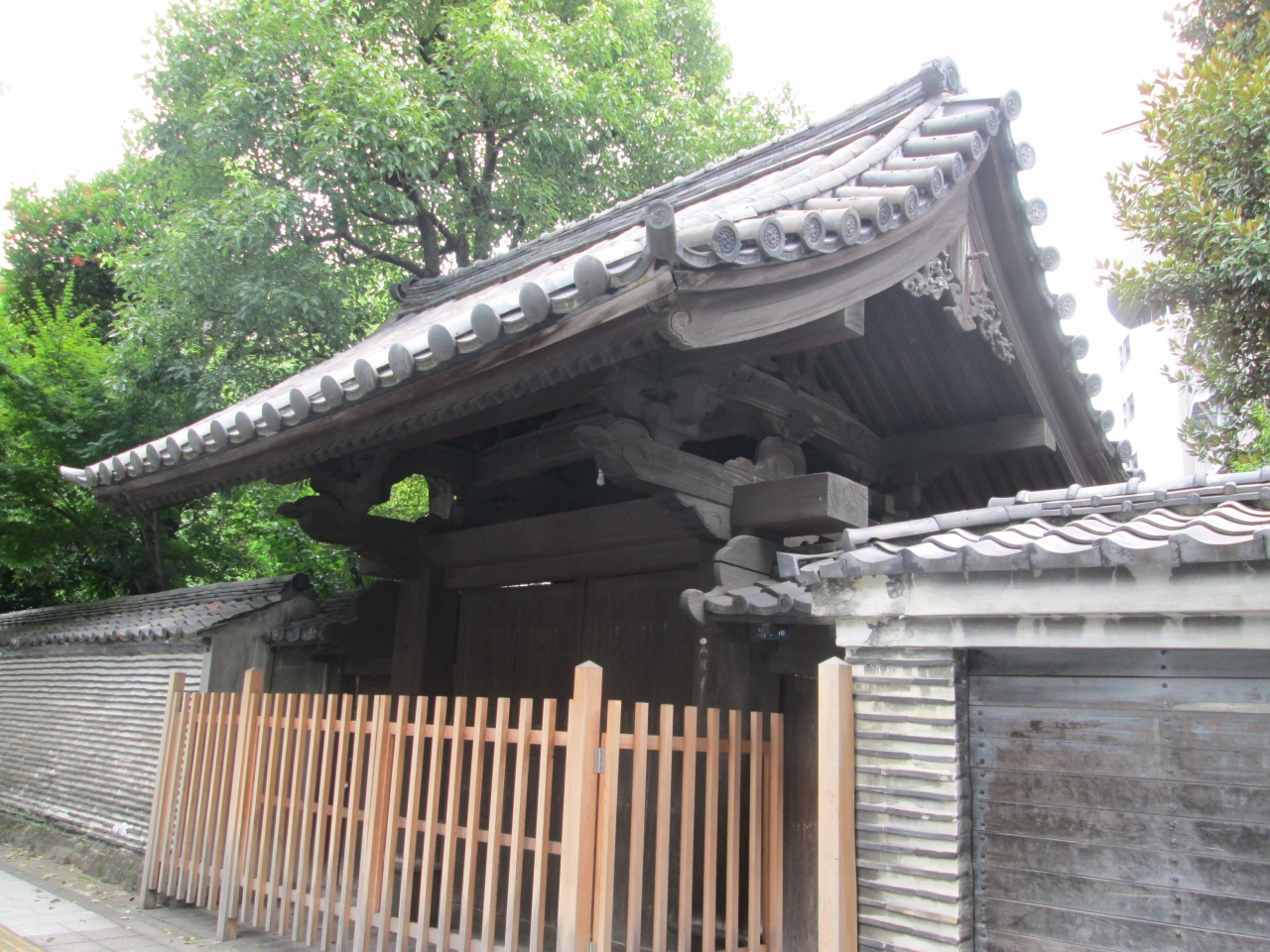 浄土宗の一寺、開山は圓融上人、本尊は不動明王像です。増上寺の子院。藥井門の山門は閉じられており、脇門から内に入ると正面に本堂と右手に石仏があります。山内には特筆するようなものはありませんが、この寺の特徴である練塀は低部に石を置き、芯柱を用いずに、瓦と土を交互に積み重ねて壁体とする構造で、上に瓦を葺いた塀をいいます。土の実の塀より強固にするために、間に瓦を挟み込んでいます。美観の観点から瓦の筋が見えるようにわざと瓦の縁を土より飛び出せている塀は、土塀より見ごたえがあります