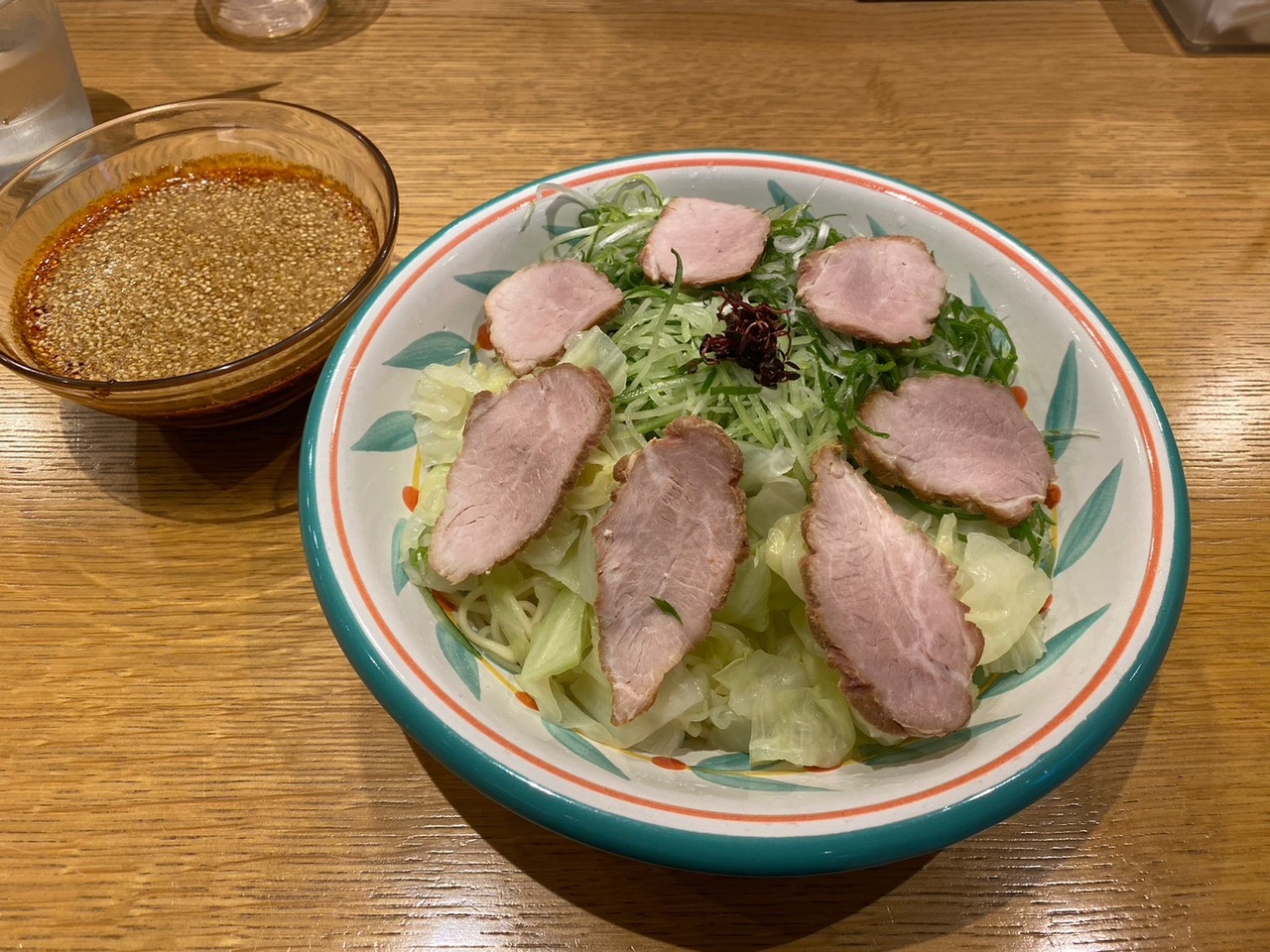 個人的にいちばん好きな広島名物です。冷たい、つけ麺の上にキャベツとキュウリなど野菜が上にのって出てきます。それをゴマたっぷりの冷たいピリ辛汁につけて食べると麺が進む進む。暑い夏にはぴったりな、新たな冷やしつけ麺です。広島ど隠れた名物だと自負してます。
