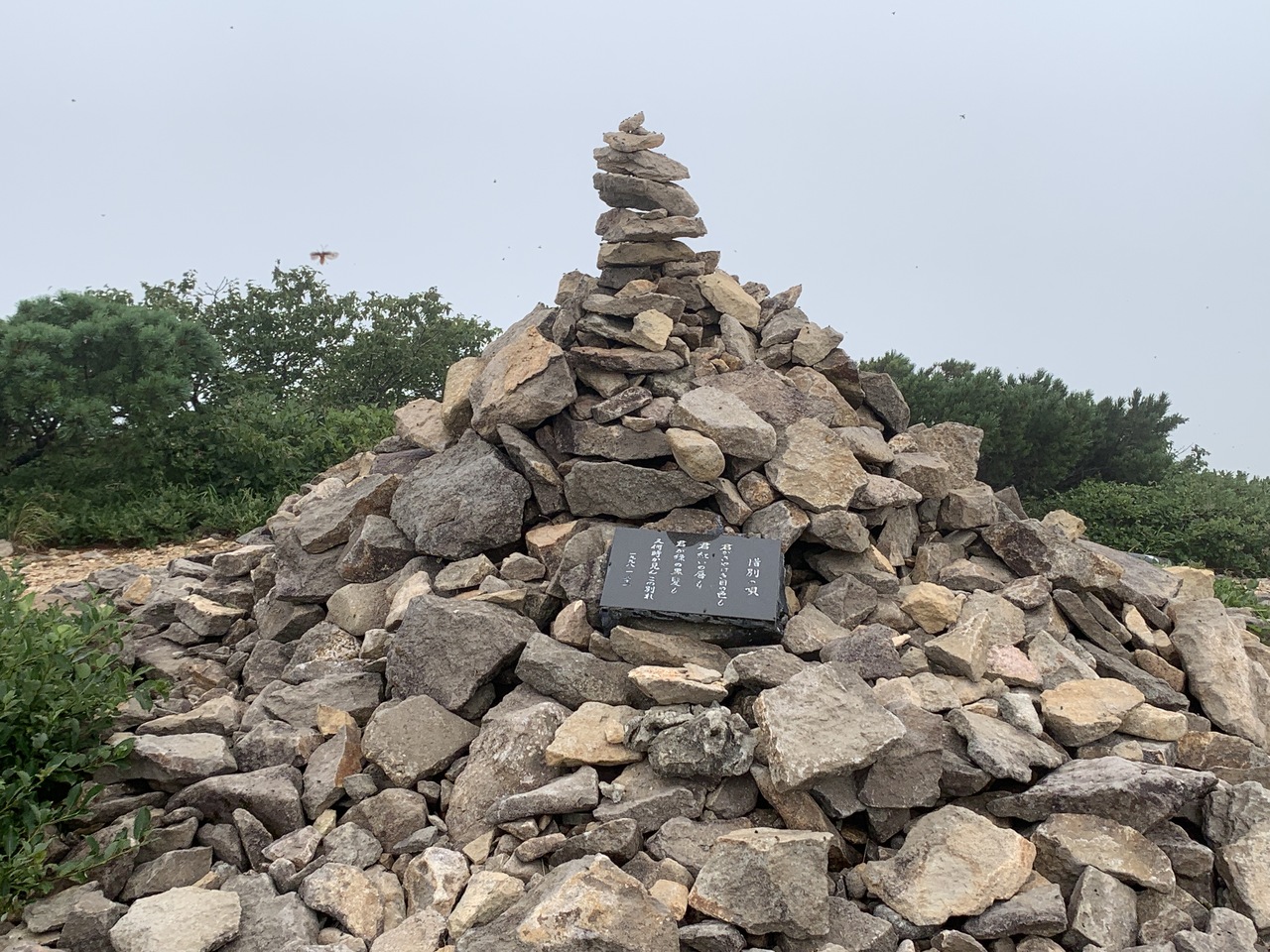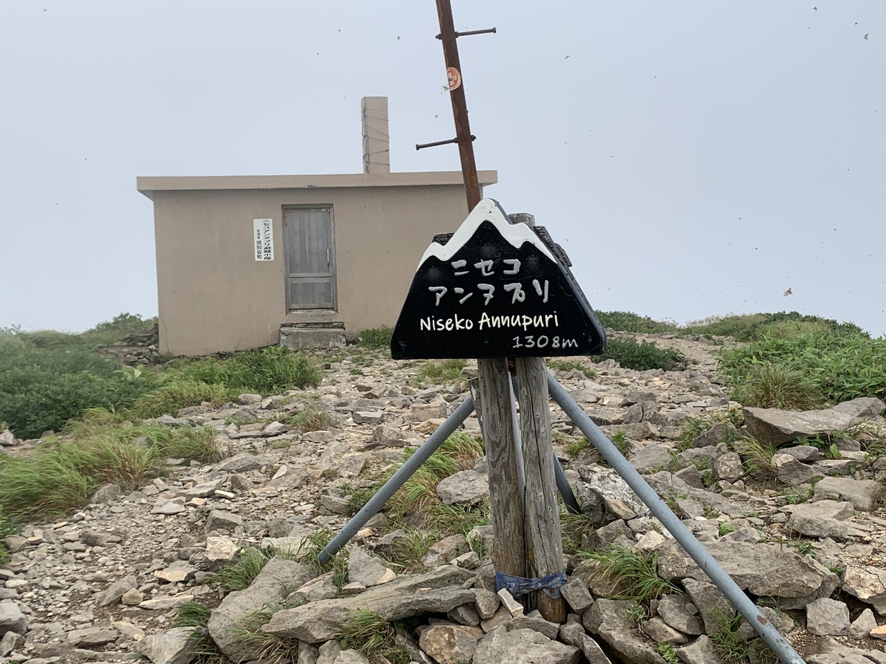 五色温泉でキャンプをしてアンヌプリに登りました。登りは1時間半ほどかかって、下りは1時間ほどでした。登山道は、はっきりしていて迷うことはなかったですけど岩場が多くて滑りやすく歩きにくかったです。山頂に着いた時にはガスがかかっていて景色は見れなかったです。観測所跡や避難所がありました。