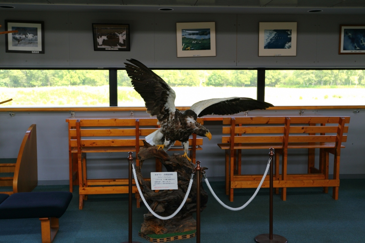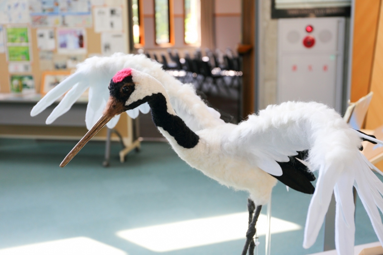 - 夏はツルは飛来せず、飼育場で3羽のツルが見られるのみ