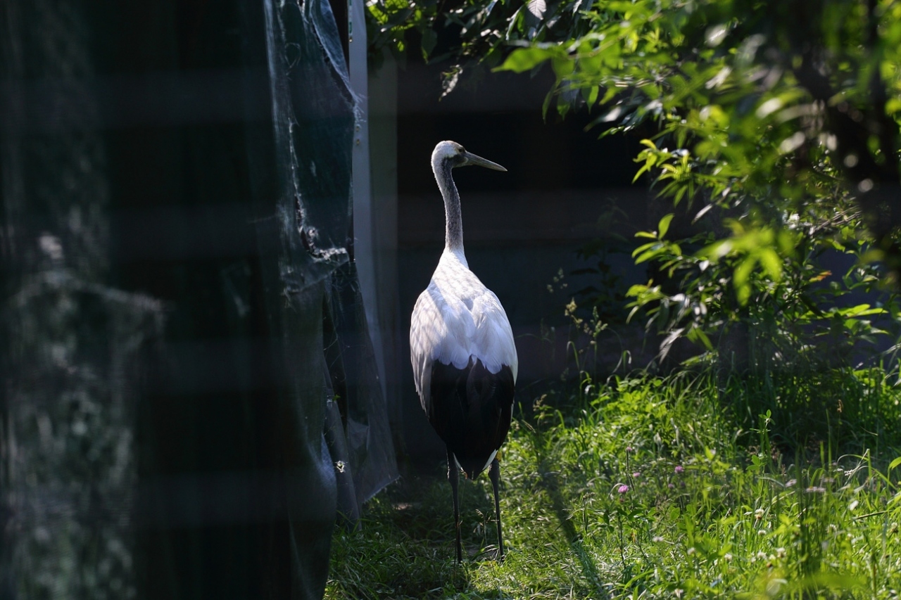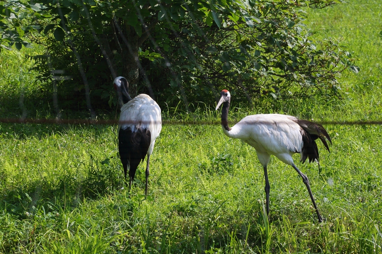 冬場は野生のツルがたくさん飛んでくるそうですが、夏場は飼育場に3羽しか暮らしていません。ここではできるだけ野生の状態で飼育するために、ヒナのころはツルの着ぐるみを着た飼育員が世話をするらしいですが、一羽、病気になってしまったため獣医が人間のいでたちで治療したため、そのツルさん、自分を人間だと思い込み、今では恋の相手は飼育員で、もう子供を増やすことができなくなったそうです。