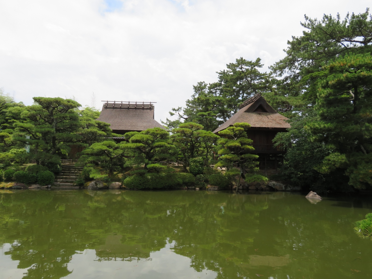 丸亀藩の中津別館として築庭された日本庭園です。朱色の太鼓橋や百本鳥居に大傘松など見どころが思ったりも多いです。なかでも観潮楼という茶亭で存在が確認されている国内最古の煎茶席と。手入れがよいのかそれほど古く感じなかったのですが最古というのですからすごいですね。栗林公園が有名ですがこちらの庭園もよかったです。