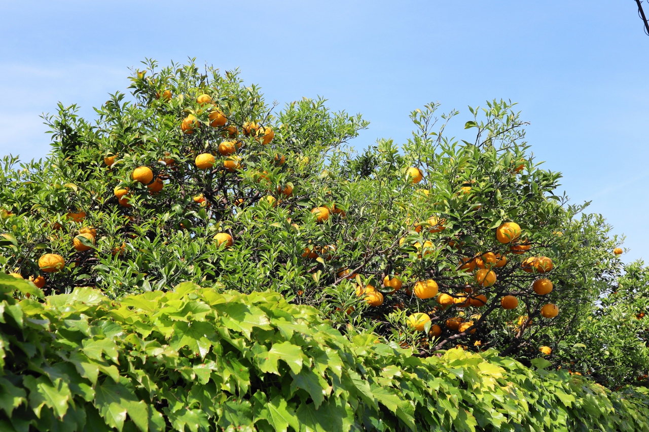 萩では夏みかんの木があちらこちらで見られ、白壁や土塀から黄色い実がのぞく風景は、萩ならではの景色として愛されています。