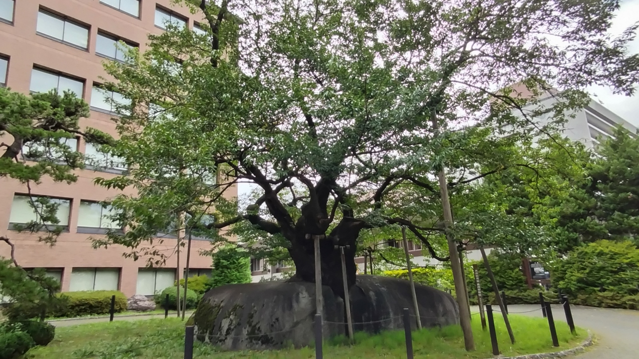 もともと南部藩家老の屋敷で、屋敷の庭石の割れ目に桜の種子が飛来して芽を出し、成長と共に石の割れ目を押し広げて今の形になったと言われています。