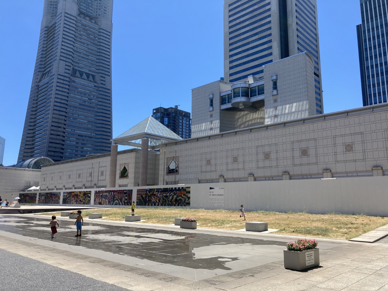 横浜美術館は、現在改修中で、中に入ることはできませんが、この美術の広場は広々としていて癒される空間でした。