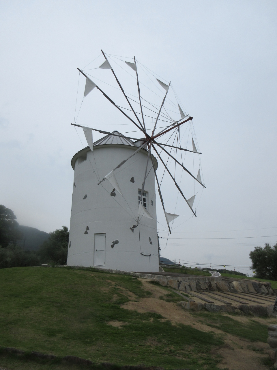 オリーブ公園の海を見晴らす小高い丘の上に姉妹島として提携を結ぶギリシャにあるミロス島との友好の証として建設された風車がある。魔女の宅急便で出てくる箒をもって飛び上がるとまるで空中を飛んでいるかのような写真を撮ることが出来る。