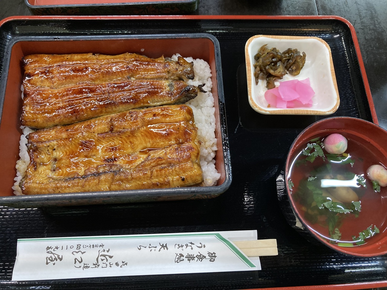 成田の参道に何件も並ぶ鰻屋ですが、ちょうど声をかけていただいたので、こちらの、お店でランチに鰻重を食べました。お重にぎっしり入った上うな重をチョイス。せっかくなので肝吸いも。優しめの味のタレで美味しくいただけました。両隣のテーブルでは女子が天ざるや天丼を食べていて天ぷらも美味しそうでした。