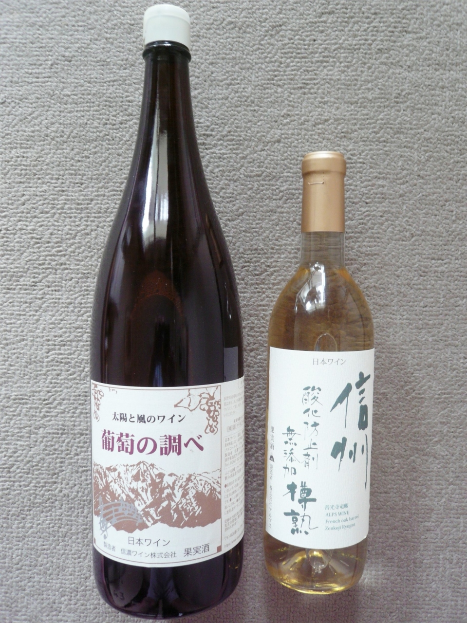 今回も我家はずっーと前からデイリーワインとして白の”葡萄の調べ”1800mlの一升瓶¥2072と、社長からのお薦めでナイヤガラ種葡萄のスッキリ辛口で酸化防止剤無添加で醸造したワイン”奏音・カノン”720mlで¥1648と少しだけ値上がりしました(+¥100ほどです)。