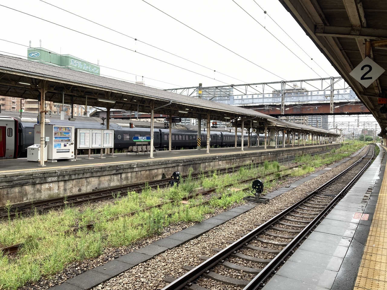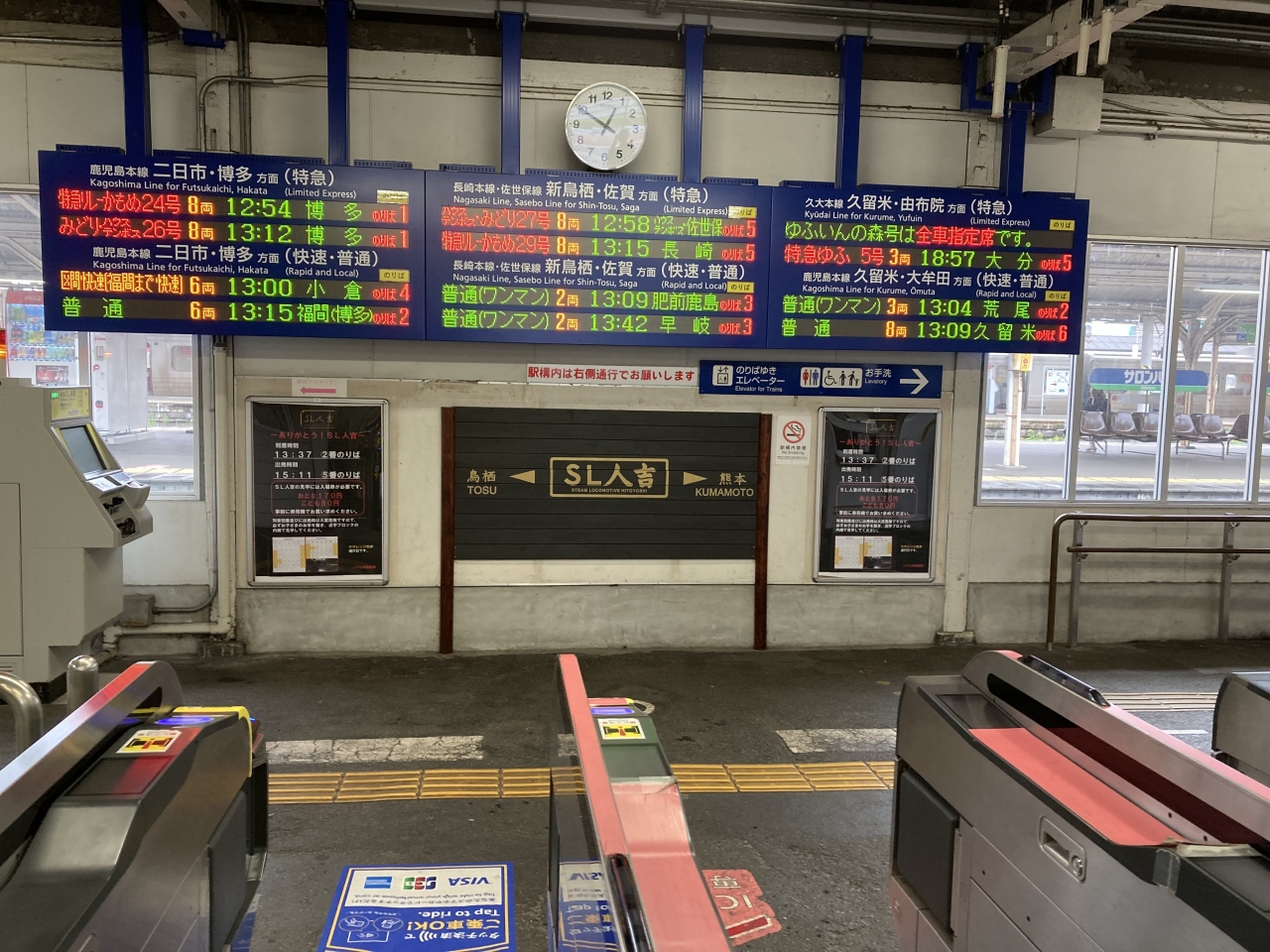 鹿児島•熊本方面行きの鹿児島本線、長崎•佐賀方面行きの長崎本線•佐世保線、そして別府•日田方面行きの久大本線へと分かれる九州における交通の要所です。ホームは非常に長く、その昔東京、大阪行きの長距離寝台列車が停車していたのであろう雰囲気が感じられます。駅舎は当時のままといった感じで、有名なうどん屋とカフェ併設のベーカリーがある程度です。改札通過後のホームにもうどん屋さんが有ります。