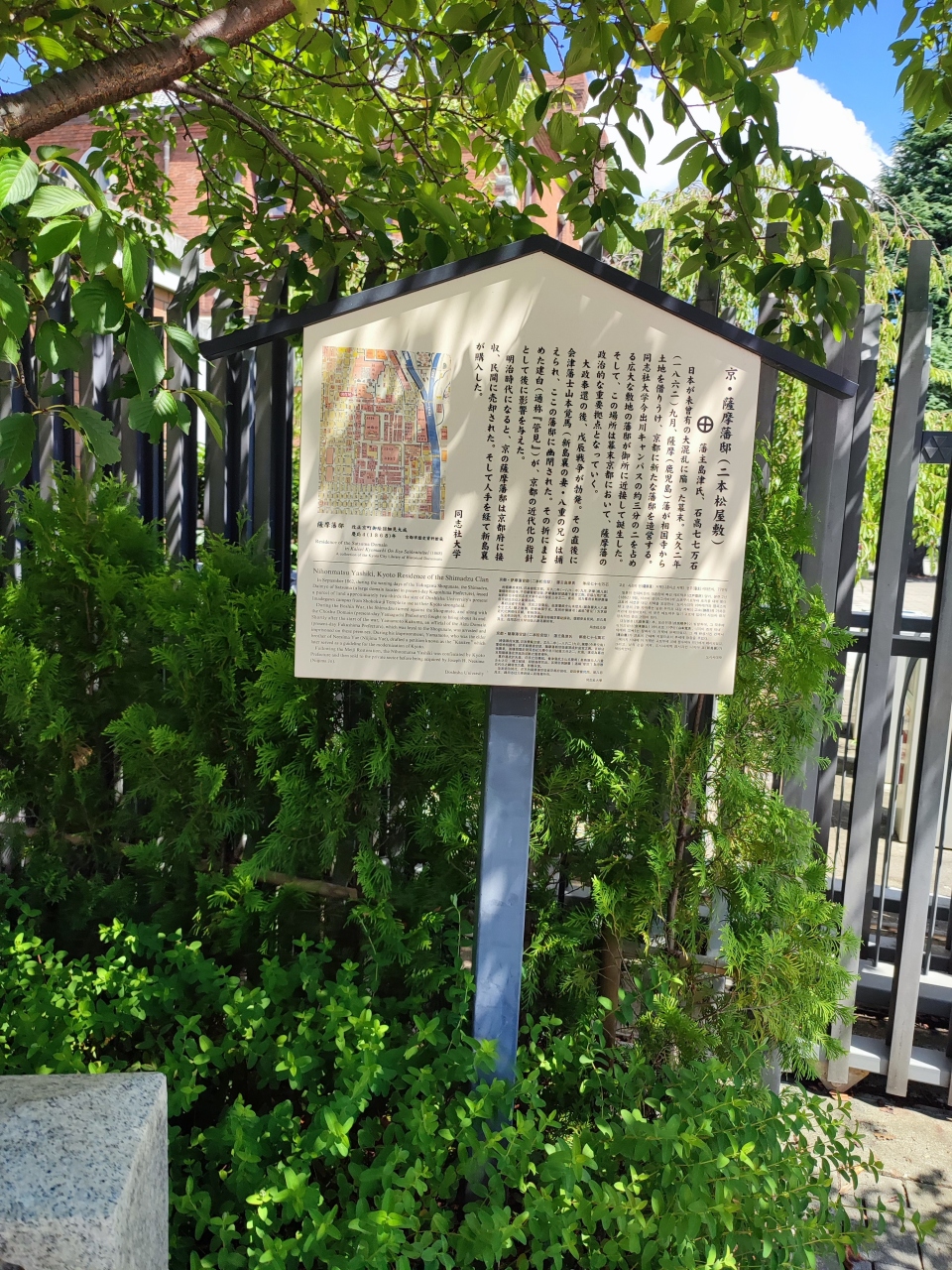 今出川キャンパスを出たところに「薩摩・・・」と書かれた石碑がありました。ここは京都なのに、薩摩って何かな?って思いましたが、幕末に薩摩の人が住んでいた跡地を示したものですよね。