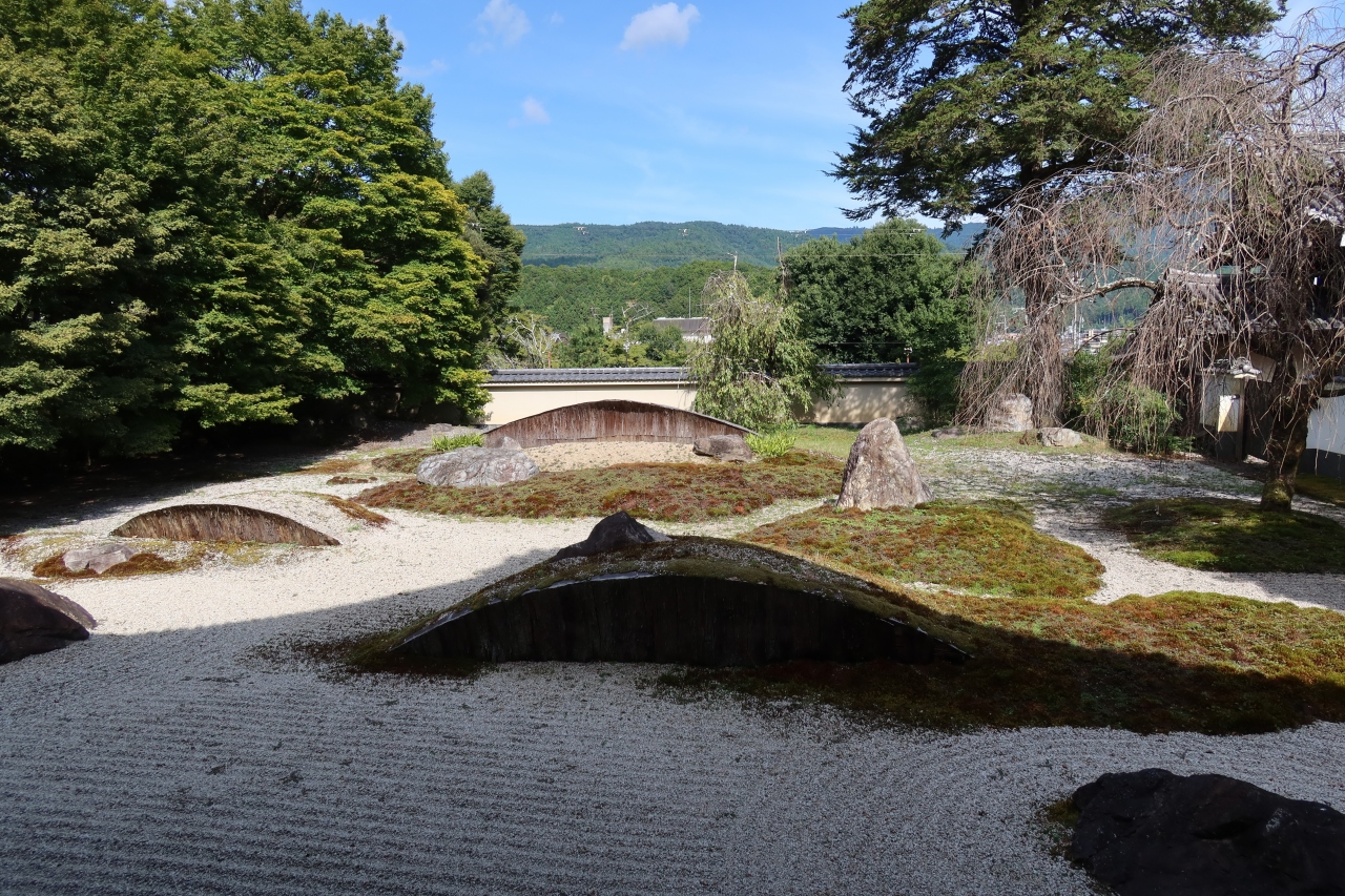 京都北部の岩倉にある皇室ゆかりの門跡寺院が実相院です。秋の紅葉が有名な寺院ですが、夏は床もみじや、青もみじも綺麗です。2か所の庭園があり、一つは山水庭園、もう一つは比叡山を借景とした少し現代的な庭園です。