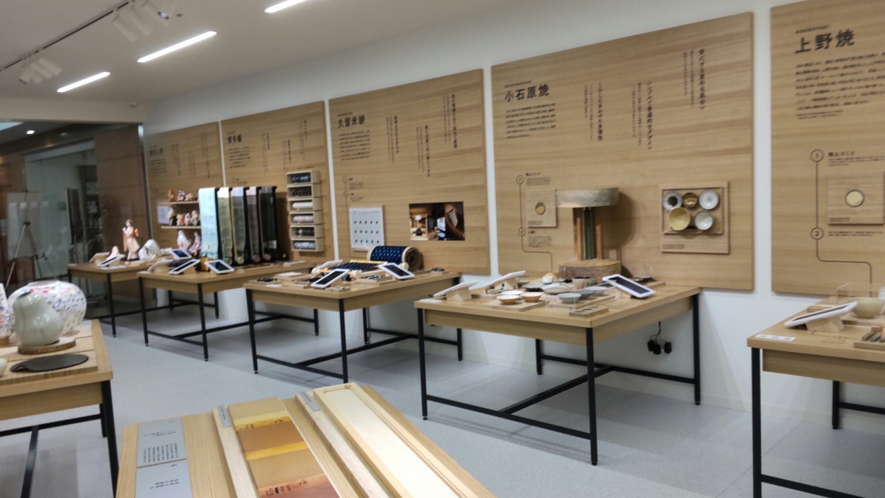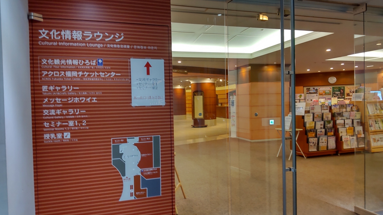 匠ギャラリーは、天神中央公園に隣接した施設「アクロス福岡」の2階の文化情報ラウンジの中にあります。博多織、博多人形、久留米絣、小石原焼、上野焼などの福岡の伝統的工芸品が展示及び説明がされています。又、文化情報ラウンジでは、花の会福岡写真展が催されていました。