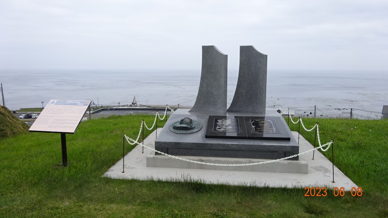 「ラ・ペルーズ」という方は、ヨーロッパ人として初めて宗谷海峡を通過した方だそうです。200年以上前のことだそうです。船の帆をデザインした記念碑が建立されています。