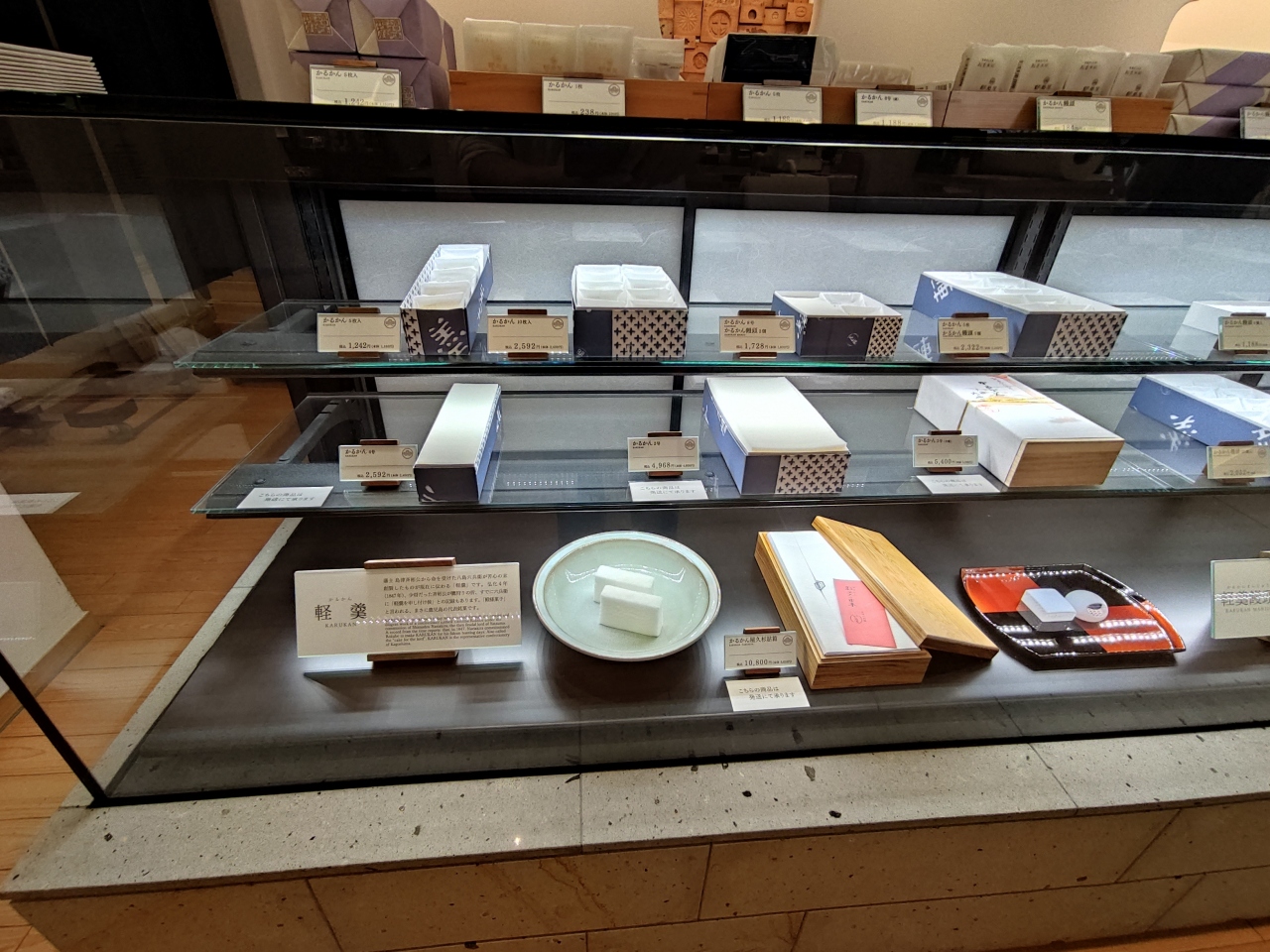 仙厳園の中にある、土産処 薩摩のれんと言う施設の中にありました。薩摩名物の軽羹(かるかん)が販売されていました。かるかんは島津斉彬公の指揮で生まれたお菓子で、自然薯と米の粉と砂糖だけで作られているそうです。