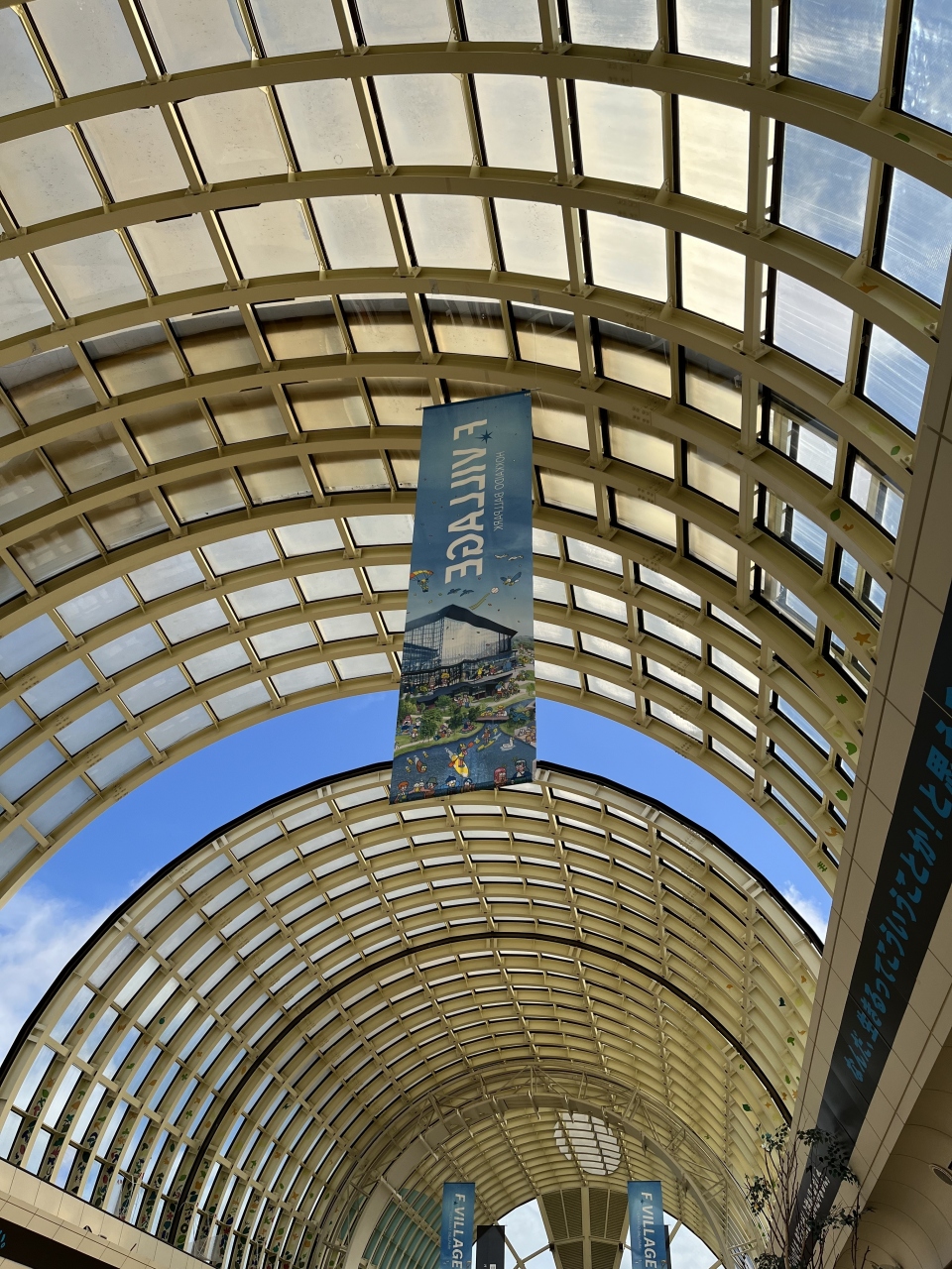 球場まで徒歩で25分。シャトルバスも利用可能です。(長い列できてました)私たちは、徒歩で向かうことに。大きな看板もあり、所々案内の方が立ってくれていたので、迷うことなく会場までつけました。