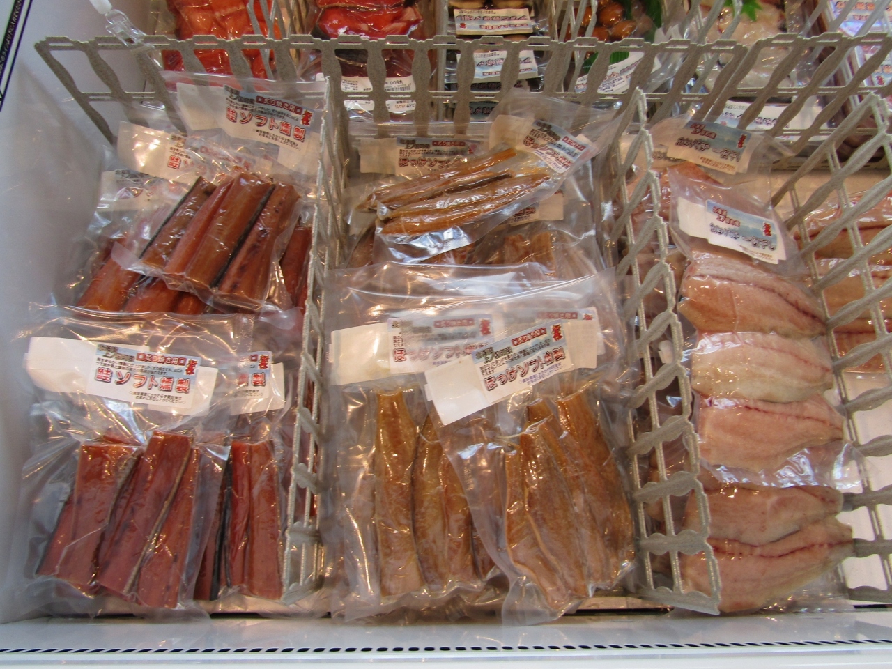 建物は日本海を望む高台の上に立つ変わったデザインですが、施設内は農産物直売のほか、冷凍・冷蔵の水産加工品なども充実していました。