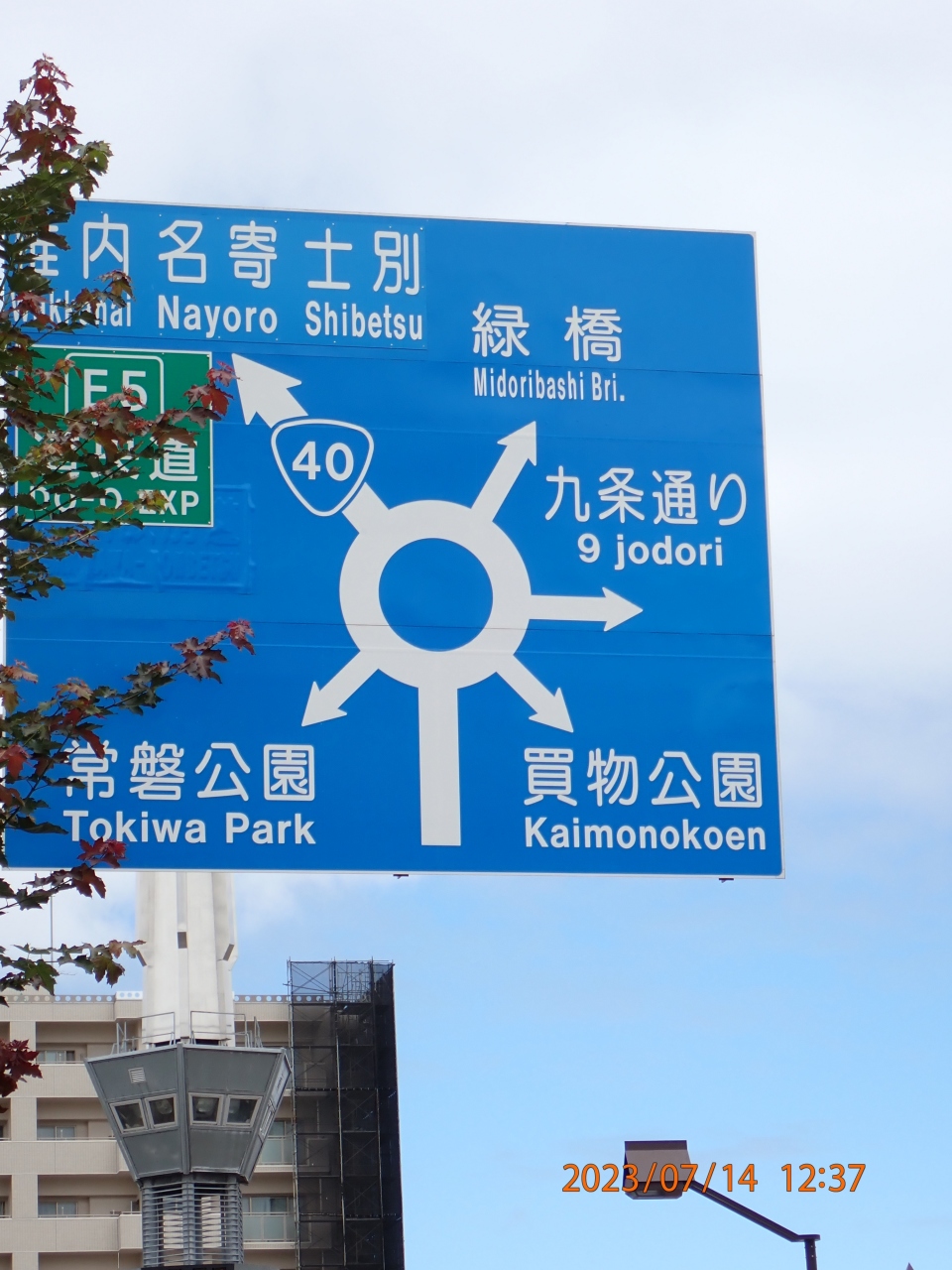 旭川観光で立ち寄りました。旭川常盤ロータリーは、大小6つの通りを接続する大きなロータリーで、ヨーロッパのロータリーと大きく違うと思ったのは、海外のロータリーなら信号はないですが、やはり日本では、全ての道路に信号が設置されていました。