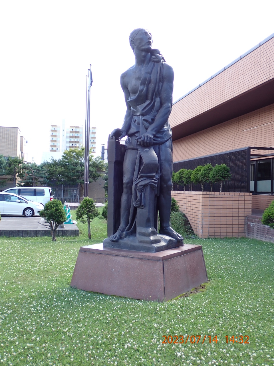彫刻「人間の森」の向かい側が「北海道立旭川美術館」です