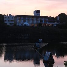 駅から歩いて10分ほどでダム湖である亀山湖があります。