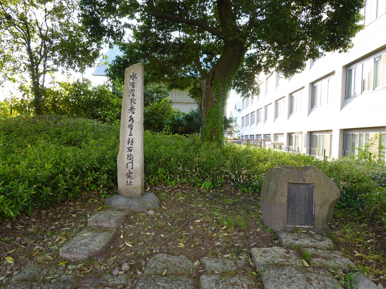 「水野三郎右衛門元宣家跡」の史跡が、最上義光歴史館の敷地内、公園通り側の植え込みにあります。水野三郎右衛門元宣は、、幕末から明治維新にかけて山形藩の筆頭家老を務めた人物です。本人を偲ばせる銅像などはなく、石柱と石碑のみなのが少し残念でした。