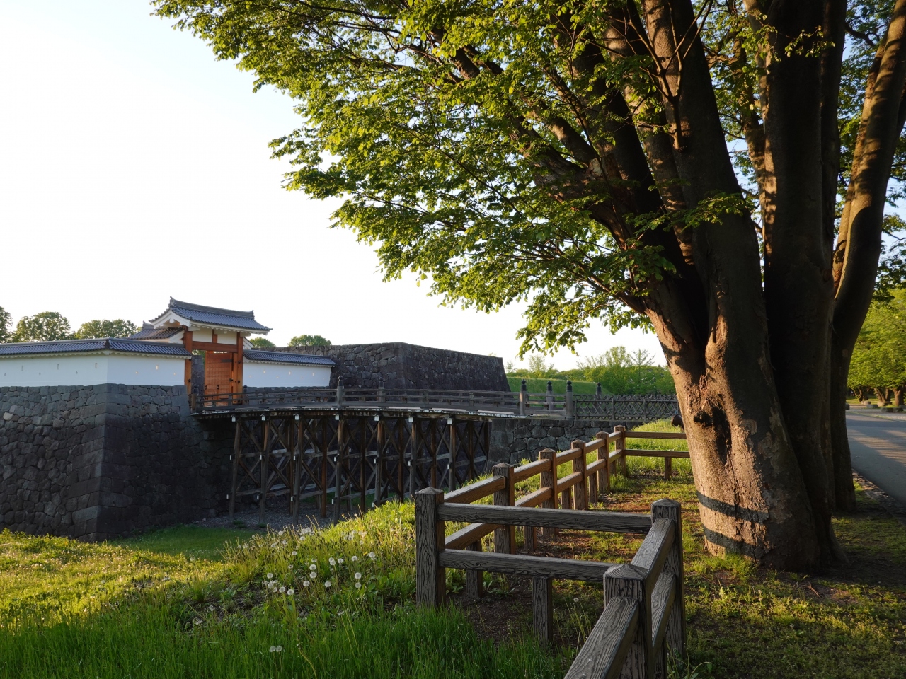 霞城公園は、JR山形駅から北方向へ徒歩数分、山形城跡を中心と風光明媚な都市公園です。山形城跡以外にも「山形県立博物館」「済生館」など見どころは多く、更には体育館などの運動施設も有しています。平日に訪れたこともあり人の姿もまばらで、夕食前の散策が心地よかったです。
