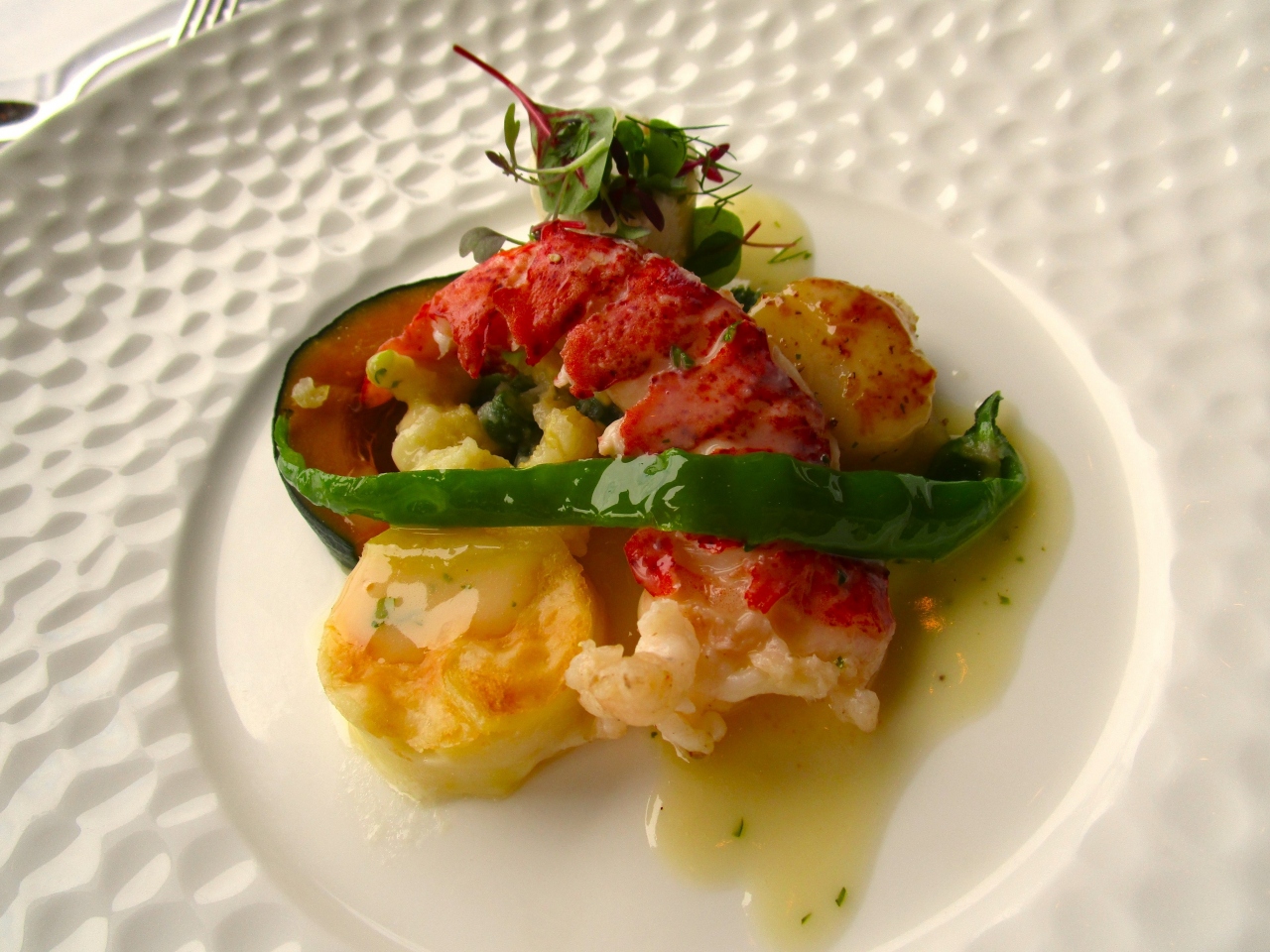 魚料理:オマール海老と帆立貝のソテー 香草風味のブールブランソース