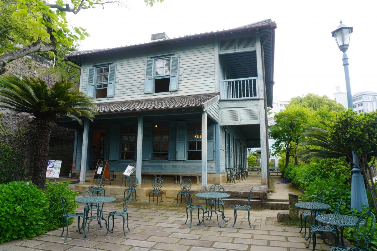 東山手十二番館は、旧長崎英国領事館の方からオランダ坂を上り切ったところ。敷地内にはイスとテーブルが置かれていかにも優雅なたたずまい。建物の中も自由見学で、喫茶スペースなんかもありますね。おもてなしの施設としてはこれ以上のものはないかも。ありがたい施設です。