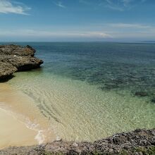 岩に囲まれた小さなビーチ