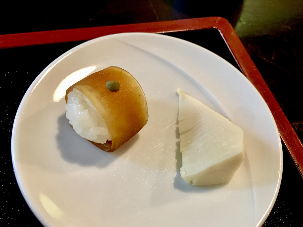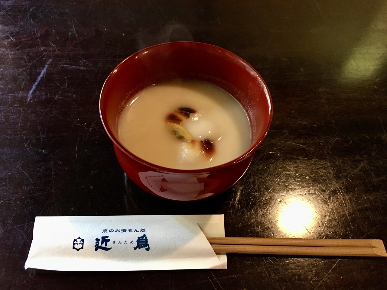 最初に白味噌雑煮が出てきます。白味噌雑煮といえば,京都だと『志る幸』とか『一乗寺中谷』を思い出します。
