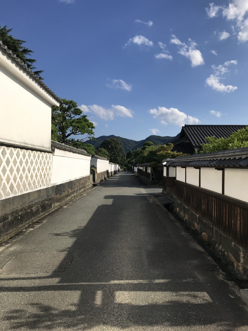 東西にのびる表通りの「御成道(おなりみち)」に面して藩の豪商、江戸屋、伊勢屋、菊屋の商家が並んでいたため、御成道から南へ入る3つの横町には、それぞれの名が残されているとのことで、そのうちのなまこ壁の美しいこの横町は「日本の道100選」の一つに選ばれている。