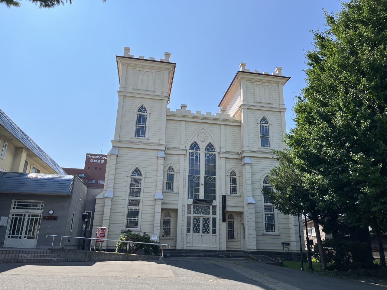弘前城を見学したあと、周囲を散策していたときにとおりかかりました。現在の建物は明治期に完成したものとのことですが、あまり歴史が感じられないほどきれいに保たれていました。ヨーロッパで見かけるようなゴシップ風の建物がお城のそばにあるのは意外な感じもしました。