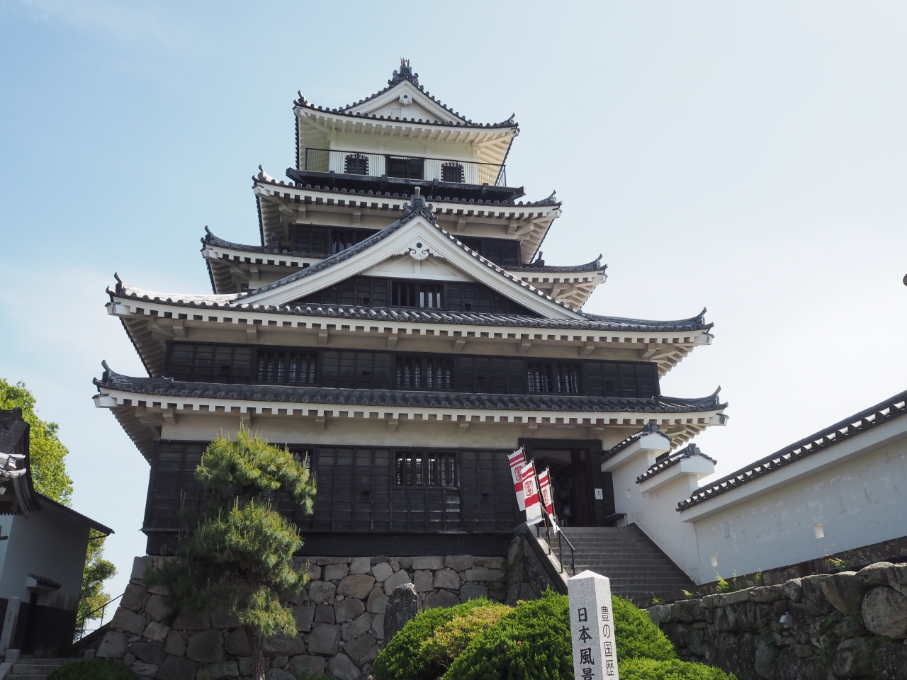 中津城は中津駅から1キロほどと市街地を抜けた先の中津川沿いにあります。戦国時代の末期に黒田氏により築城された城です。江戸時代には小藩としていくつかのの藩主の支配を受けています。天守は戦後に再建されたもので、コンクリートの城です。風情はありませんが、天守内は資料館になっています。天守の眺めは本丸を出た西側からの眺めがよく、石垣、堀、天守と合わさっていい眺めが見られます。