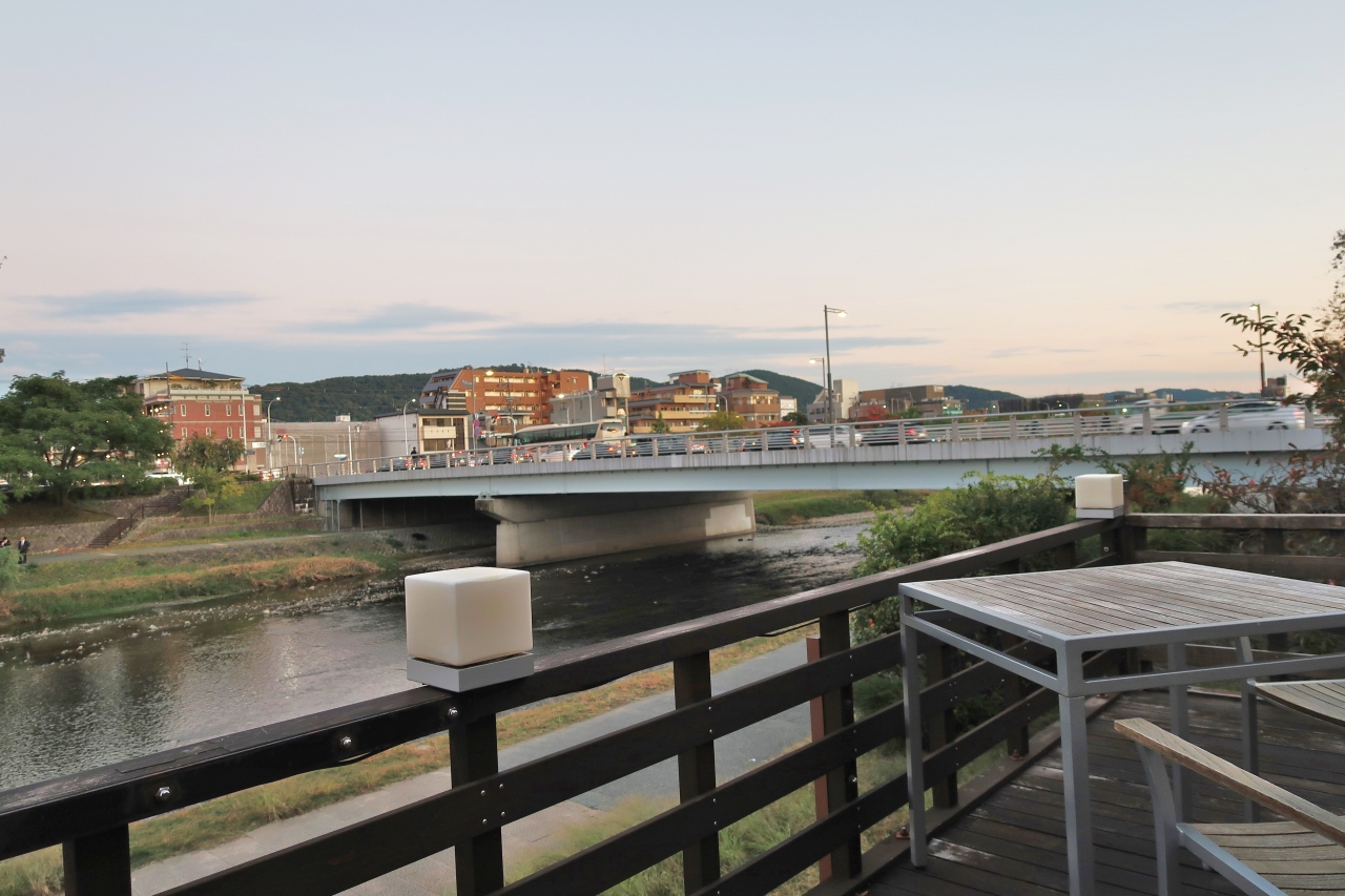 東西線京都市役所前駅から降りてすぐの鴨川に架かる橋です。サロン・ド・ロワイヤルへのグーグル歩きナビで、なぜか河川敷に降りてこの橋の下をくぐるルートを指示されました。グーグルを消して、自力で辿り着いたサロン・ド・ロワイヤルの鴨川納涼床のカフェテラス席からは、御池大橋はもちろん、暮れなずむ鴨川の景色を楽しみました。