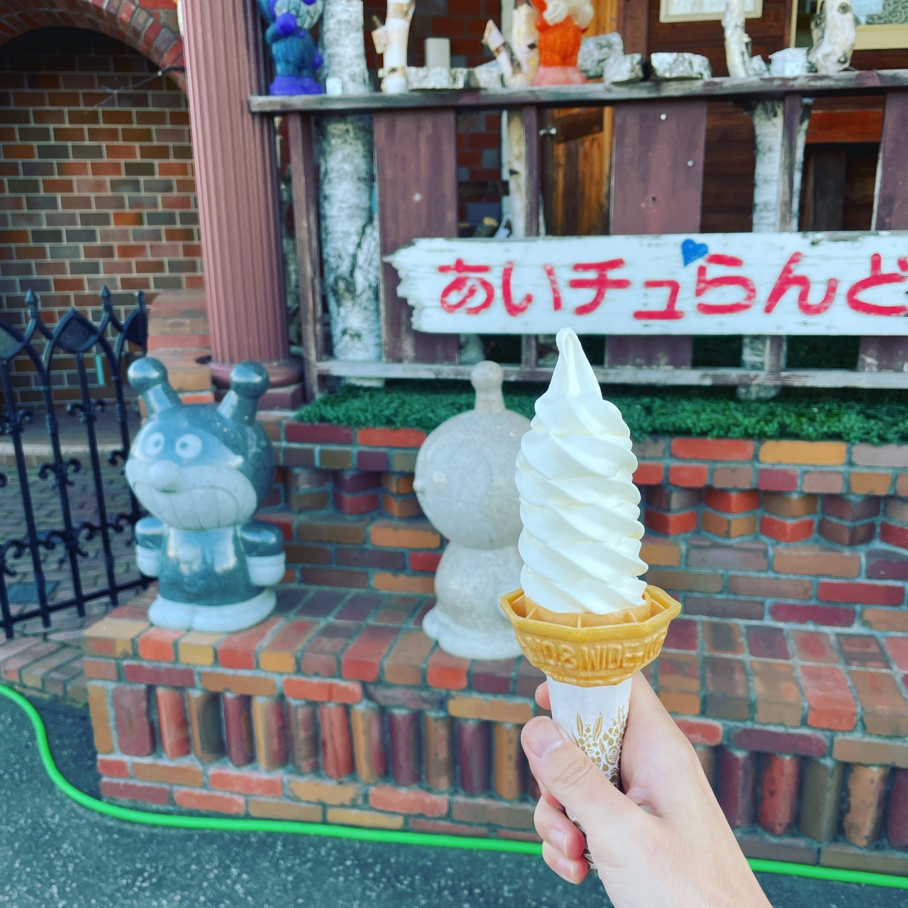 長沼町の近くにいるときには、このアイスクリーム屋さん「あいチュらんど」によく行きます。お店前にアンパンやバイキンマンがいてお店構えが「?」となりますが、味は素晴らしいです。基本的にテイクアウトですが、車を駐車スペースが広めなので、アイスクリームを買って車の中で食べる、というスタイルになります。