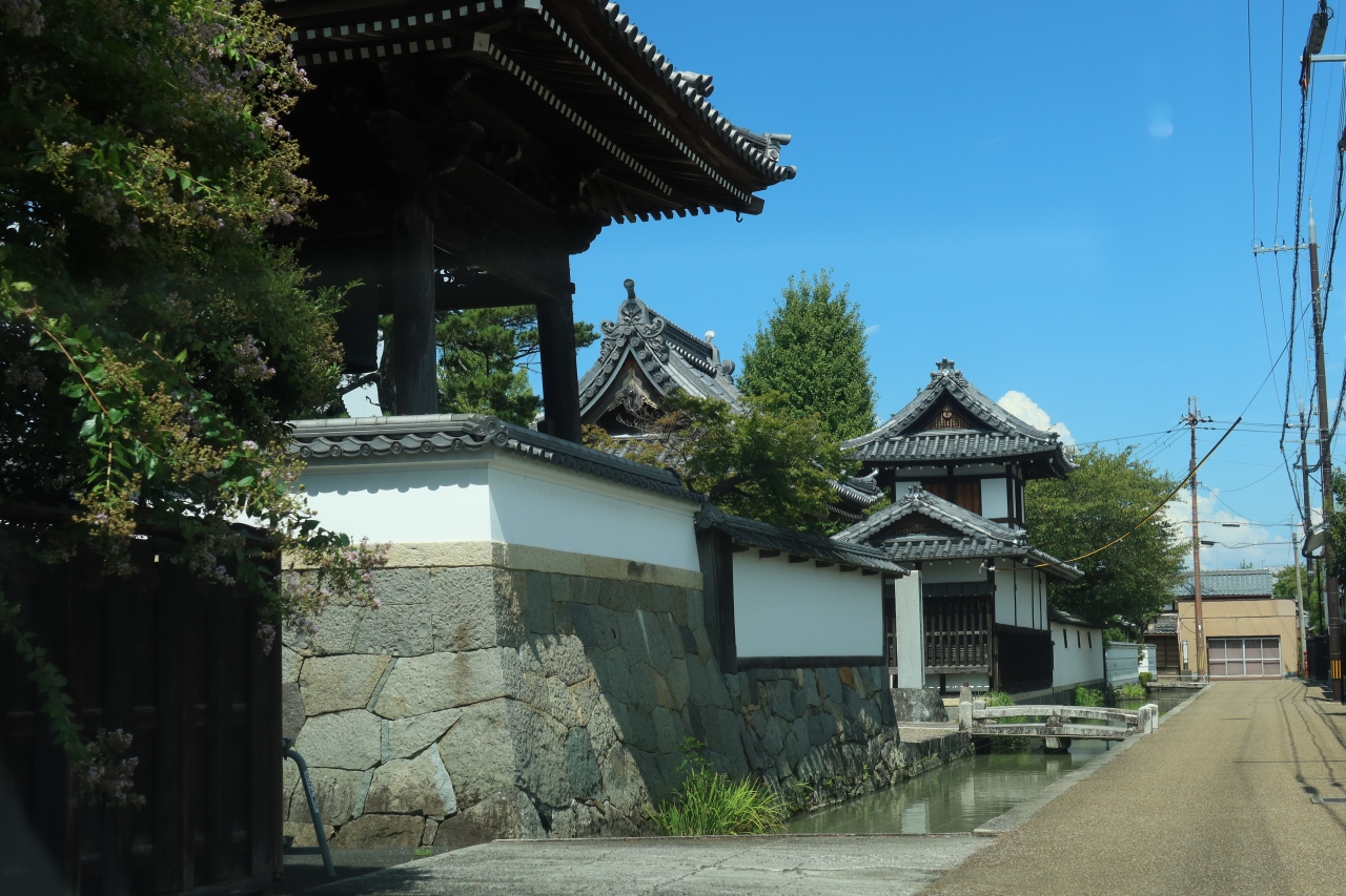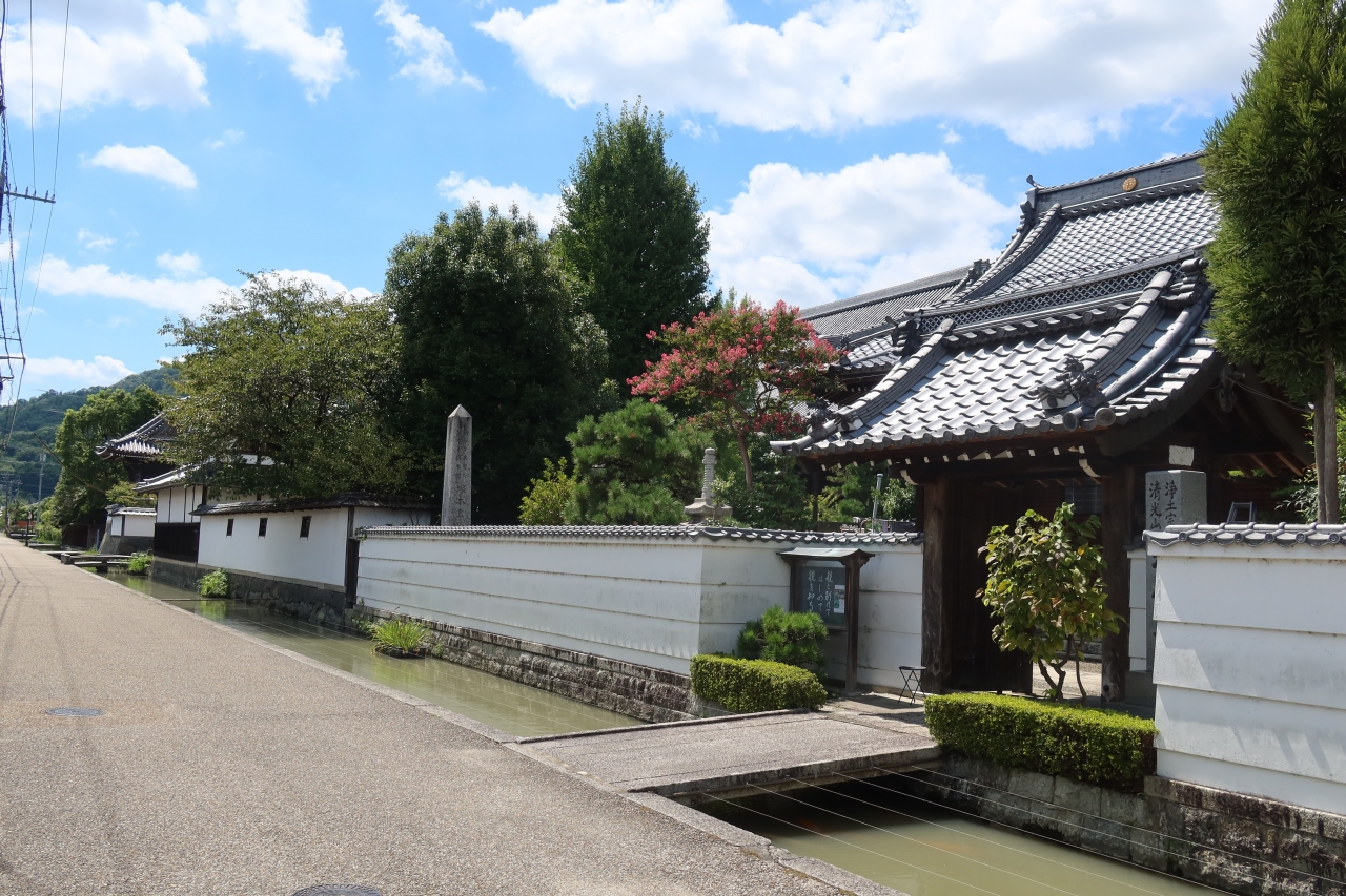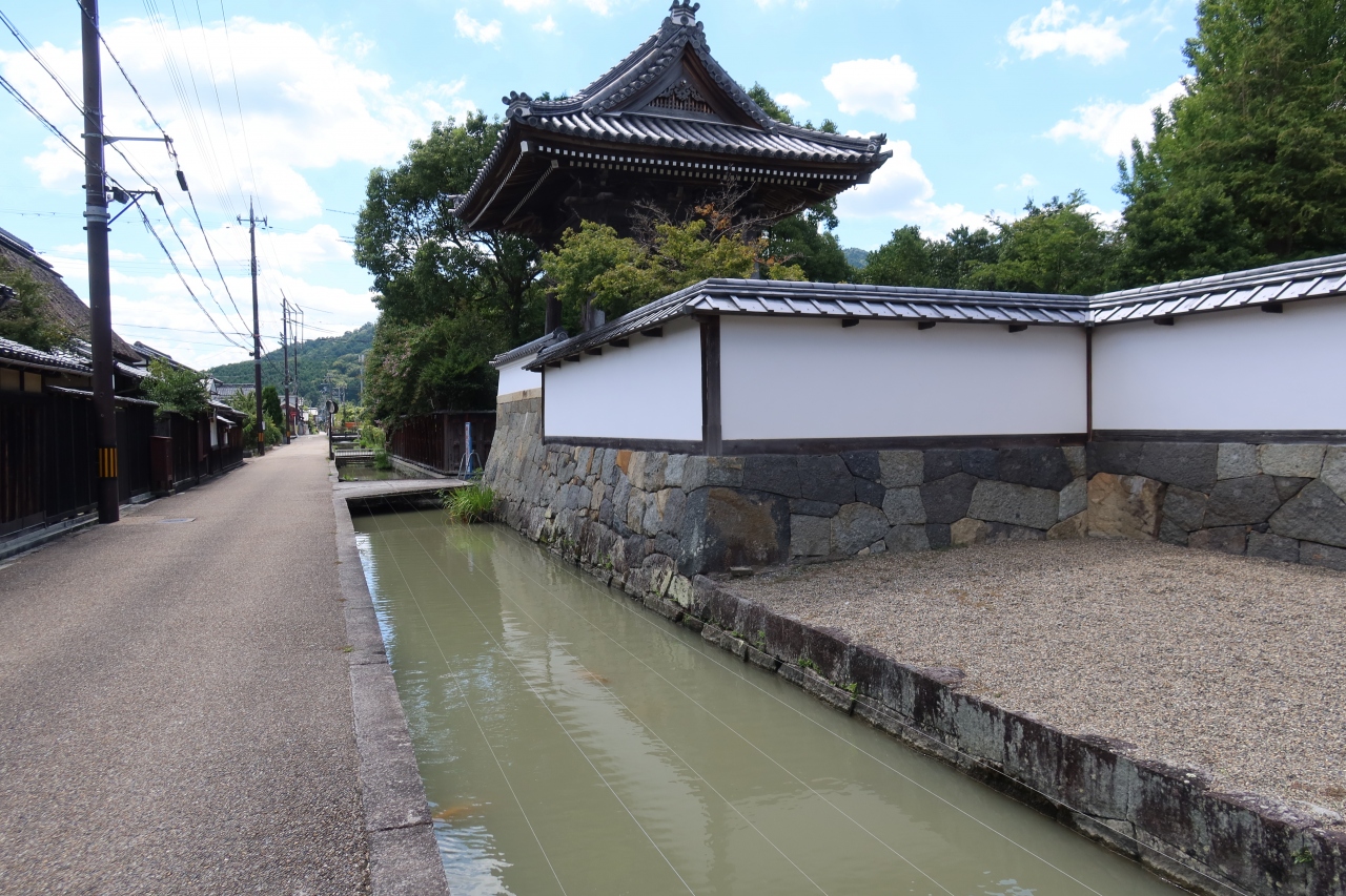 五箇荘の金堂地区にある弘誓寺、五個荘近江商人屋敷外村繁邸、五個荘近江商人屋外村宇兵衛邸の前を通る通りが寺前・鯉通りです。通りには錦鯉が泳ぐ用水路が流れ五箇荘で一番趣きのある通りです。車で通る場合、幅員が狭く脱輪することもあり得るので注意が必要です。