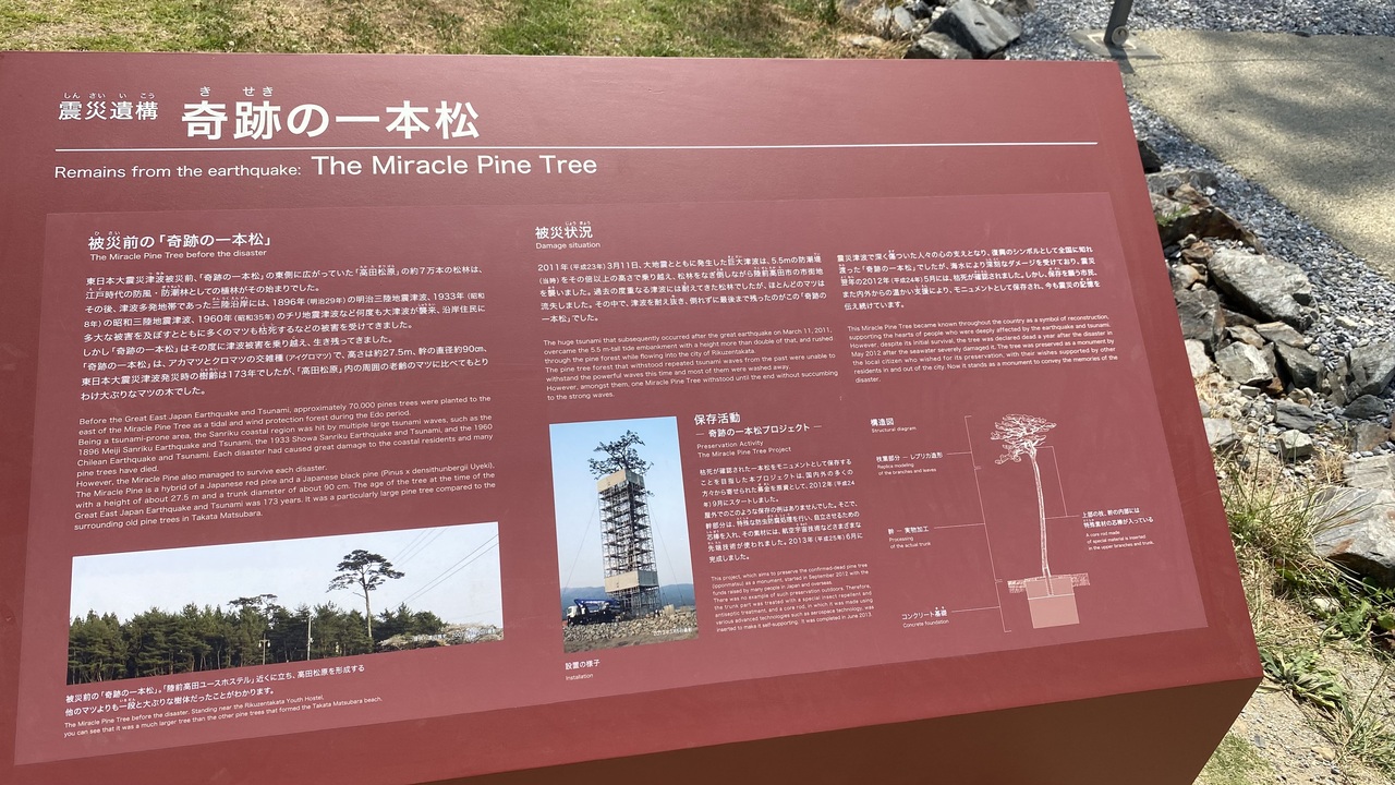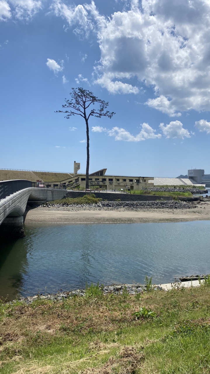 道の駅から海に向かう途中にあります。震災少ししてから行った時はまだ整備中でしたが、公園として整備されてます。奥には陸前高田ユースホステルの被災した建物が残されており、かなり生々しいです。堤防に登った景色はサイコーです。