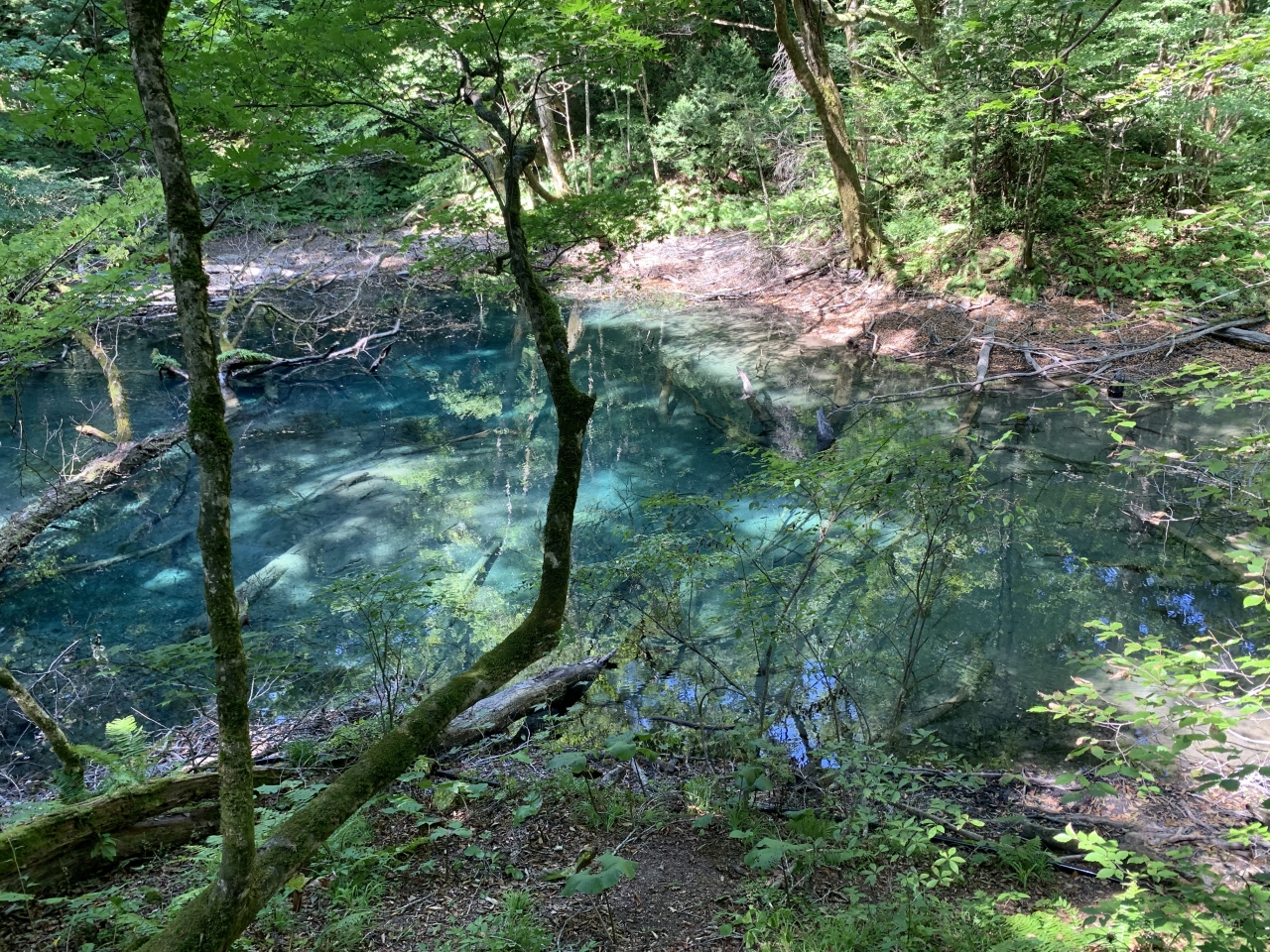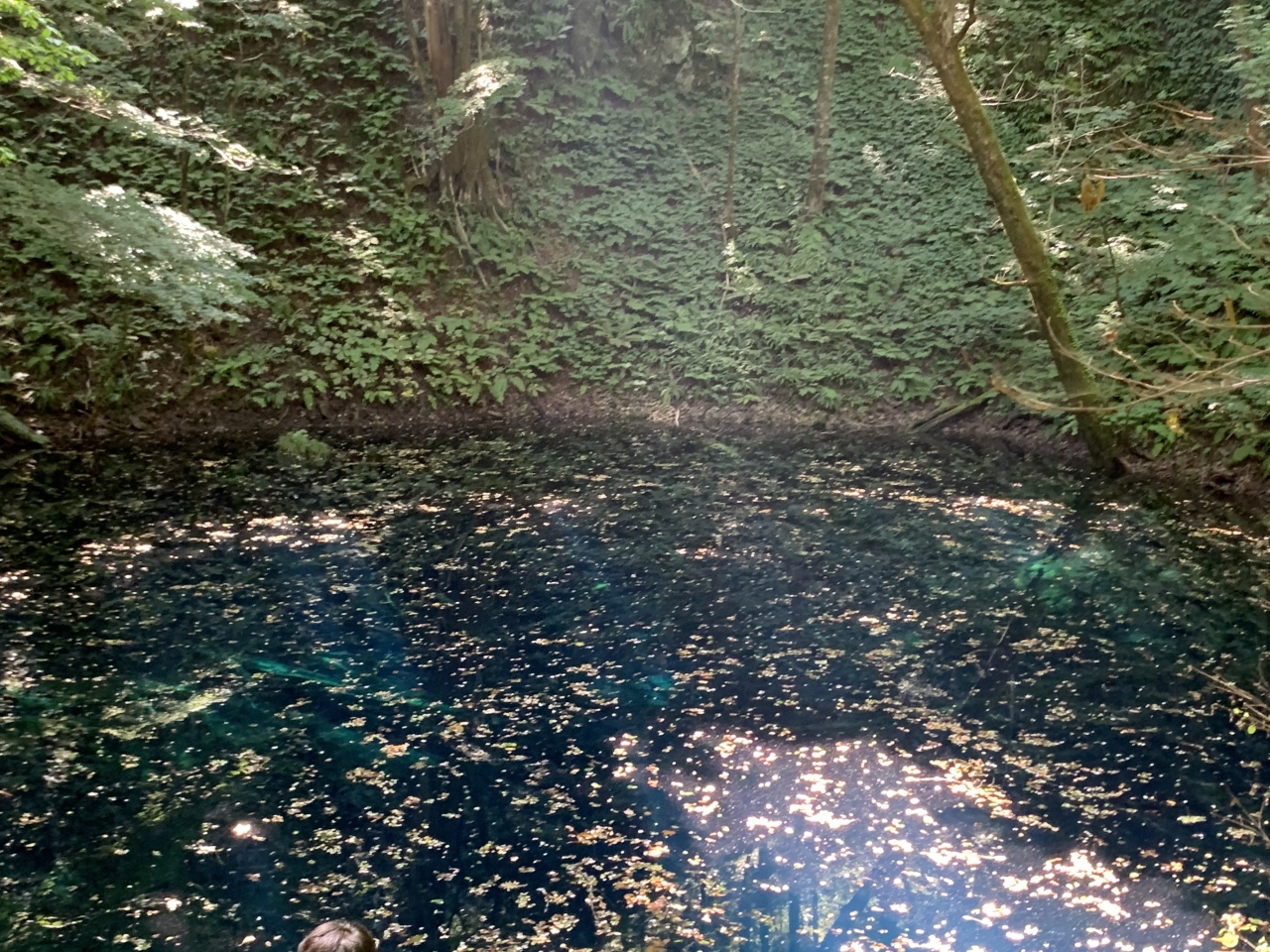 青池は透明度が高く、深い青で日が差したところがキラキラ輝いてとても綺麗でした。