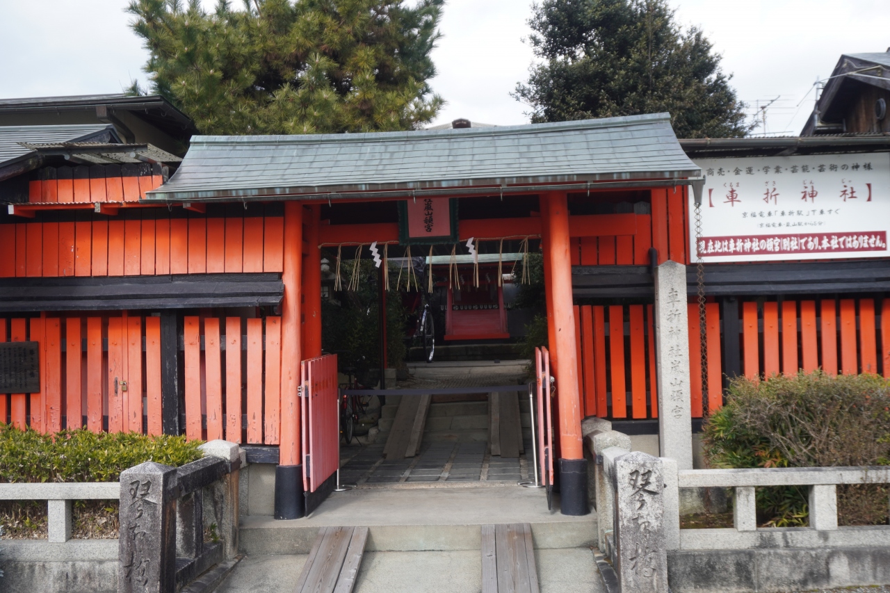 車折神社 嵐山頓宮は、渡月橋を渡らずに桂川沿いに上流へ向かおうとしたところ。赤い板塀に囲まれた小さなお社がありました。ちなみに、頓宮というのは御旅所のこと。車折神社は、嵐山では桂川に船を浮かべての三船祭というのもありますから、それとも関係しているかもしれません。