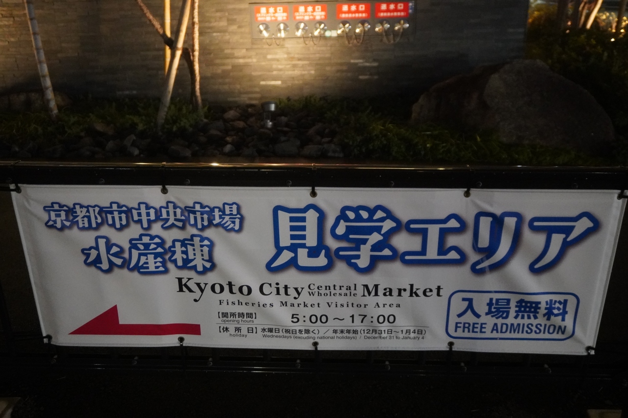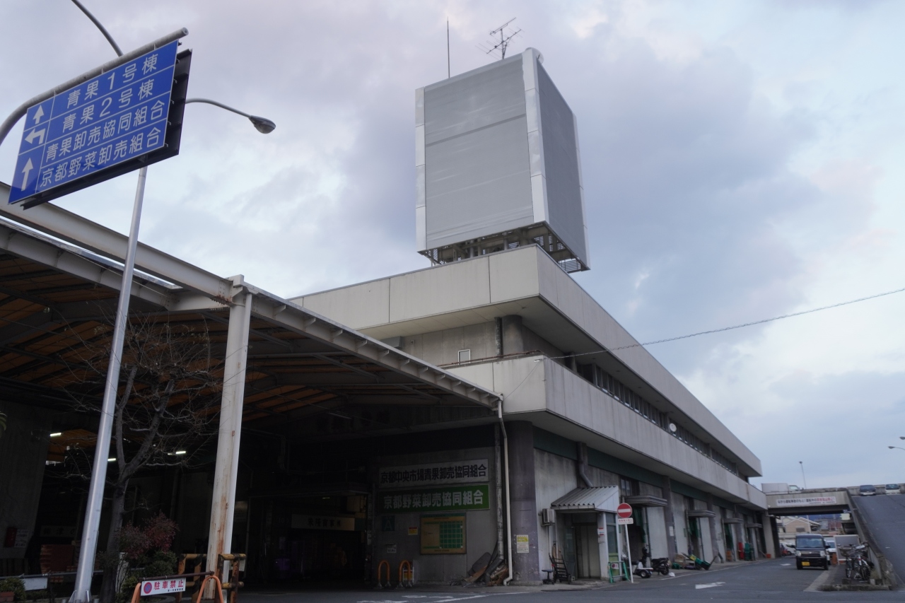 京都市中央卸市場は、丹波口駅のほど近く。そっけないコンクリートの建物があるだけで、場外市場もないし、周囲には賑やかなお店があったりもしません。夕方だったし、よけい閑散といった感じ。いずれにしても、観光の対象にはならないと思います。