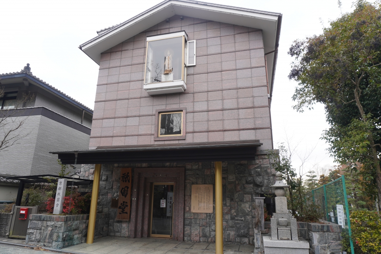 京都祇園堂は、円山公園からねねの道に入ってすぐの右側。何の建物だか分からない奇妙な建物ですが、ここは白河法皇の晩年の寵妃であった祇園女御ゆかりの地。祇園女御がここに阿弥陀堂を建てたということから、その地に祇園女御の菩提寺を建立したのだとか。ちなみに、この祇園女御は平忠盛に下賜されて、平清盛が生まれたことから清盛は白河法皇の落胤説があるという話にもつながります。なお、建物が開いている時もあるようで、機会があれば話を伺ってみたいものです。