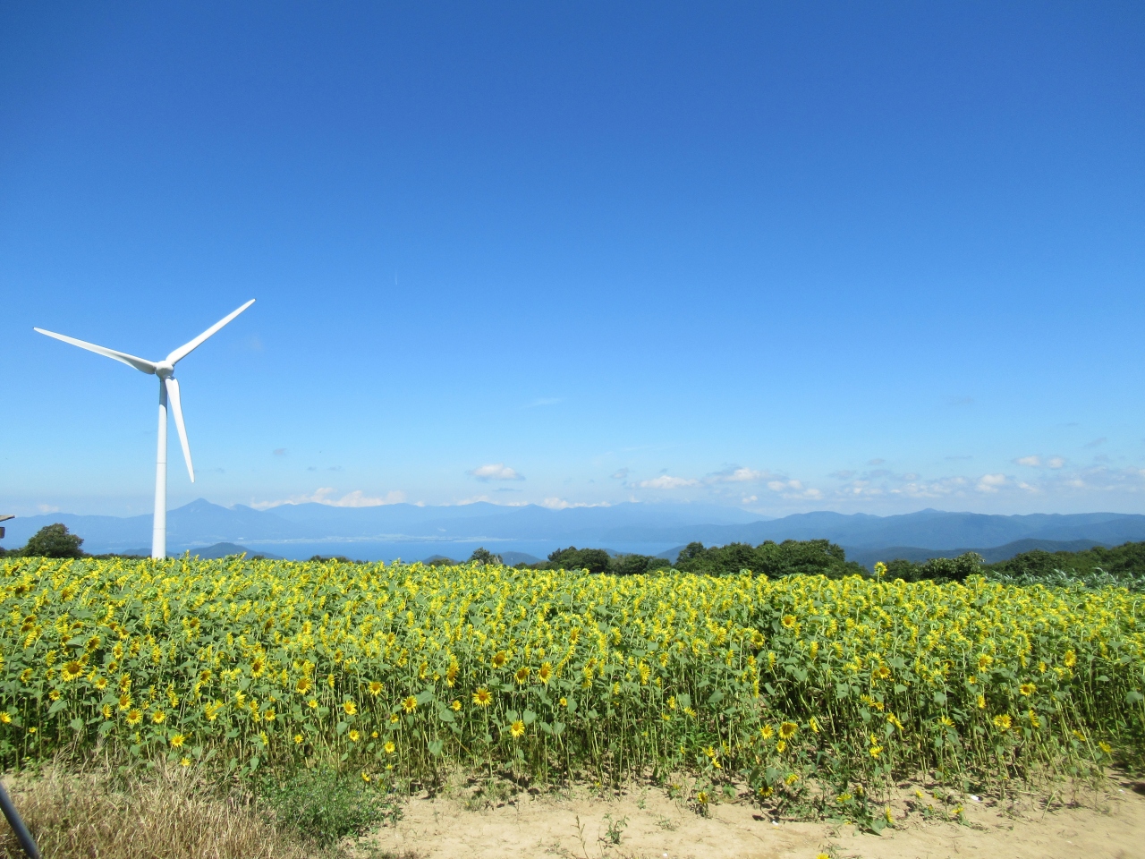 ひまわり畑までの道のりは遠く険しいですが、猪苗代方面へ行ったなら行くべき場所です。一面のひまわり畑は圧巻。ウェディングフォトを撮っている方もいらっしゃいました。間近でみる風力発電の迫力もすごいですし、おすすめの場所です。ひまわり畑では3本まで持ち帰り可能なのでハサミを持参すると良いと思います。残念な点が1つ。トイレは外観はキレイなのですが、中はイマイチ。臭いもきつめでした。そこだけ残念。